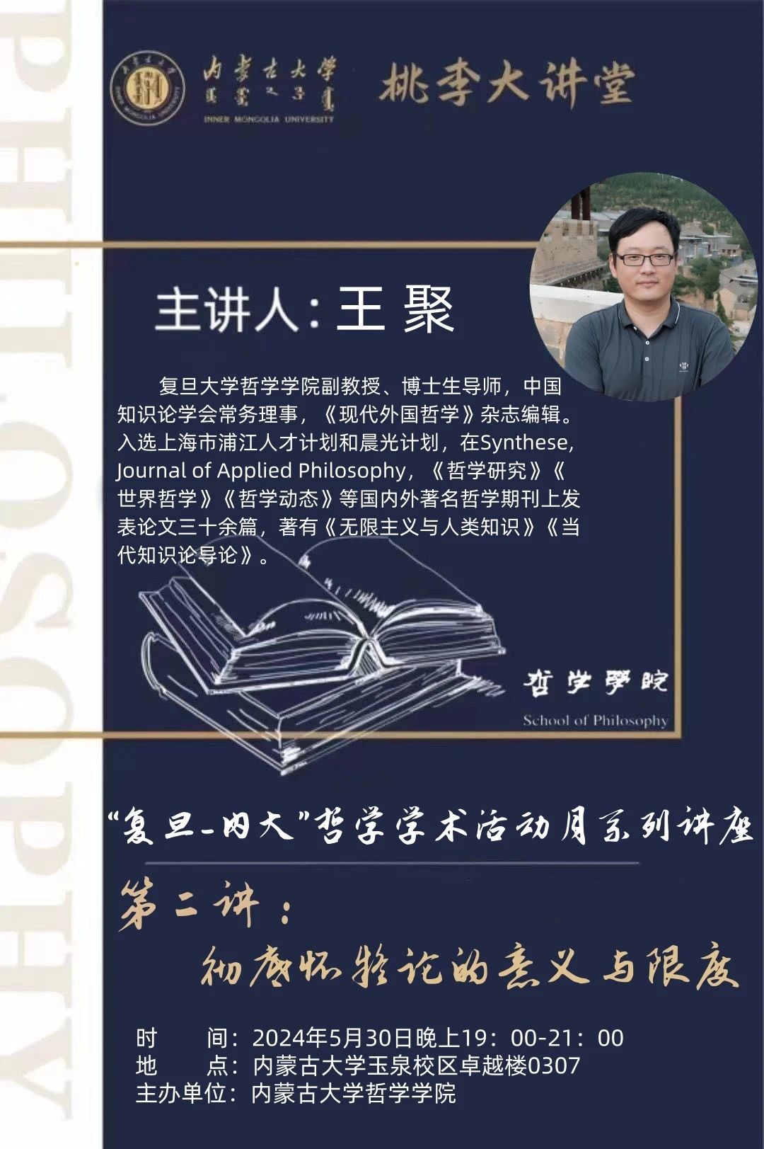 为涵养我院哲学底蕴,提升师生学术素养,5月30日起,我院将举办“复旦-内大”哲学学术活动月系列讲座,邀请多位复旦大学的专家学者,深入剖析前沿哲学问题,与师生朋友们一起追寻哲学智慧,敬请期待!