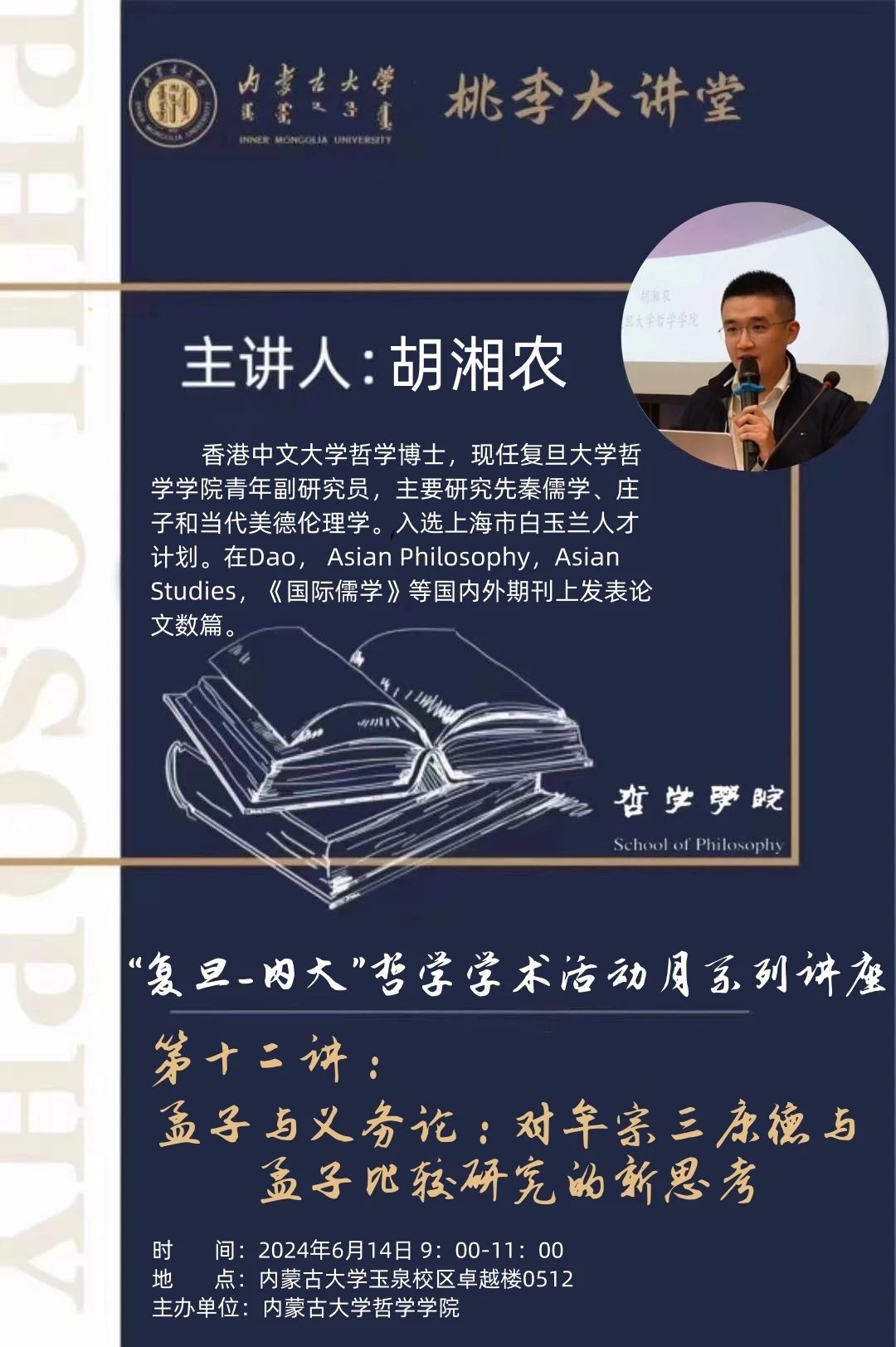 为涵养我院哲学底蕴,加强我院对外学术交流,5月30日起,我院陆续举办“复旦-内大”哲学学术活动月系列讲座,邀请多位复旦大学的专家学者,深入剖析前沿哲学问题,与师生朋友们一起追寻哲学智慧,敬请期待!