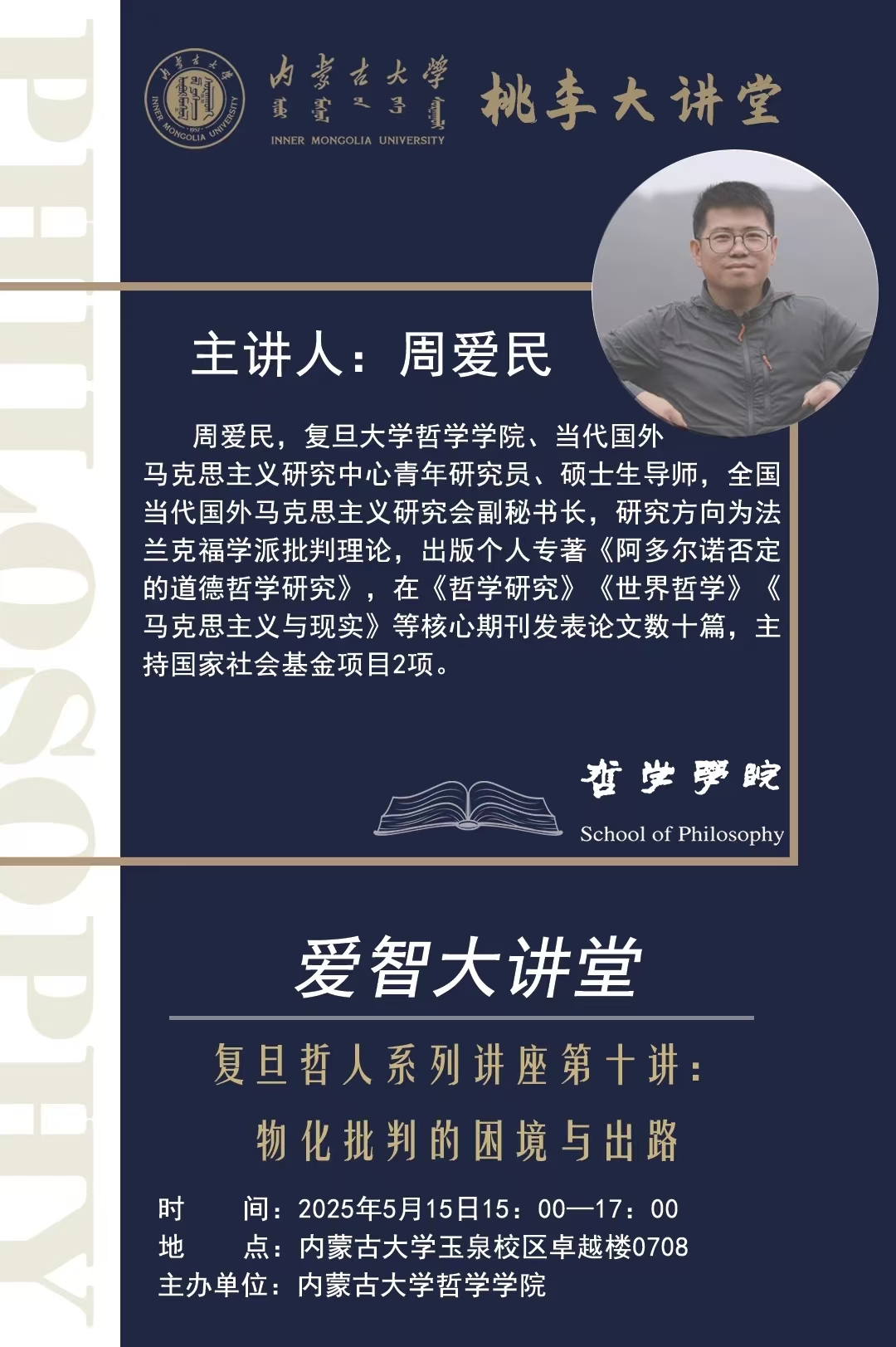 如果物化现象是资本主义社会发展中的普遍现象,并且这种现象是需要加以批判的消极现象,那么就必然需要回答基于何种评判标准才能最为恰当地批判物化现象。卢卡奇虽然在阐述其物化理论时,部分回应了评判标准的问题,但是由于他兼具哲学人类学与历史哲学的回应方式,造成了其理论在回应此问题时存在自我矛盾的情况。从阿多尔诺到哈贝马斯再到霍耐特的批判理论,试图在克服卢卡奇物化理论缺陷的基础上,构建新的物化批判理论。本讲座将梳理与反思这条物化批判理论的发展路径,并借助“交往自由”概念进行一定程度的修正,使其能更好地分析并批判物化现象。
