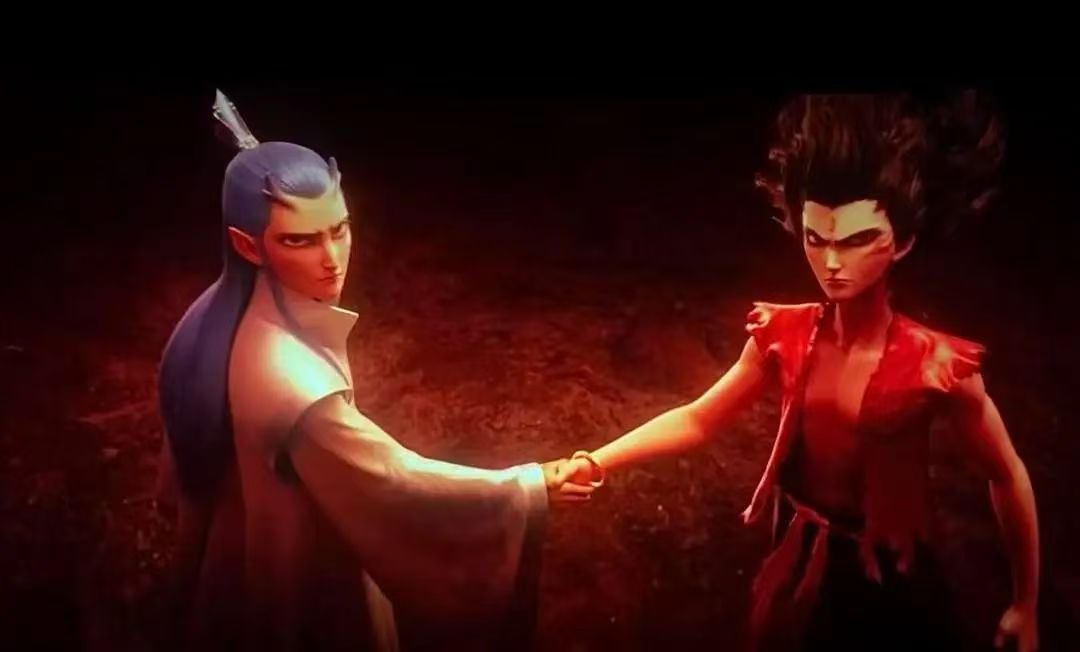 “傻子,谁要和你同归于尽啊。”灵珠与魔丸本是一体,善恶只在一念之间,二者最终在对抗中实现共生。魔丸的载体诞生在健全的家庭中却不能被族群接纳,而灵丸的载体却需要承担整个种族的仇恨与未来。这不同却相似的孤独感,成为了哪吒与敖丙结交为友的契机,这暗含着东方哲学的辩证思维。而哪吒将“逆天”转化为“顺心”,实则是将本真性生存确立为新的存在论根基。在善恶的辩证中,我们看到了人性的复杂与多面,也看到了和解与共生的可能。正如黑格尔所言:“存在即对立的统一。”哪吒与敖丙的故事,正是在善恶的对立中,找到了共生的统一,展现了人性的光辉与复杂。
