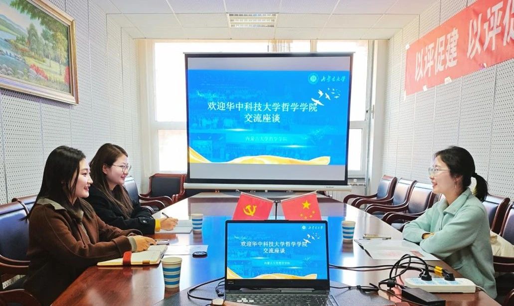 李旖妃就华中科技大学学生工作团队的党团建设、学生组织建设、学生社会实践成果与目前发展的局限和困境等方面进行介绍,同时对学院日常思想政治教育工作进行分享交流。