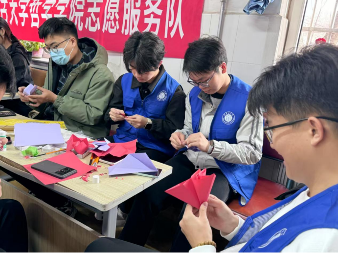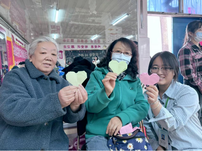 志愿者与社区居民们齐聚一堂,在武晓伟同学的指导下,手持彩纸,认真折叠,制作雷锋帽和红心。一顶顶雷锋帽在手中成型、一颗颗红心在指尖跃动,这些精美的纸艺作品,是对雷锋精神最质朴的表达。