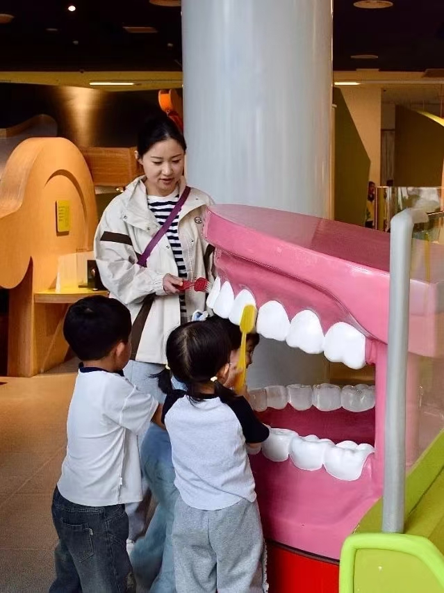 活动伊始,老牛儿童探索馆的负责老师热情接待了志愿者团队,详细讲解了这座四层场馆的布局与注意事项。馆内精心设置了数十个特色展区:“亲亲宝贝”区通过趣味互动装置帮助低龄儿童建立自我认知;“远古时代”展区以复原的原始工具再现人类文明曙光;“史前生命”展区则通过生动的进化长卷展现生命演变的奥秘。这些展区从个体认知到宏观探索,构建起一个全方位、沉浸式的学习环境,让志愿者能更有效地引导孩子们开启探索之旅。
