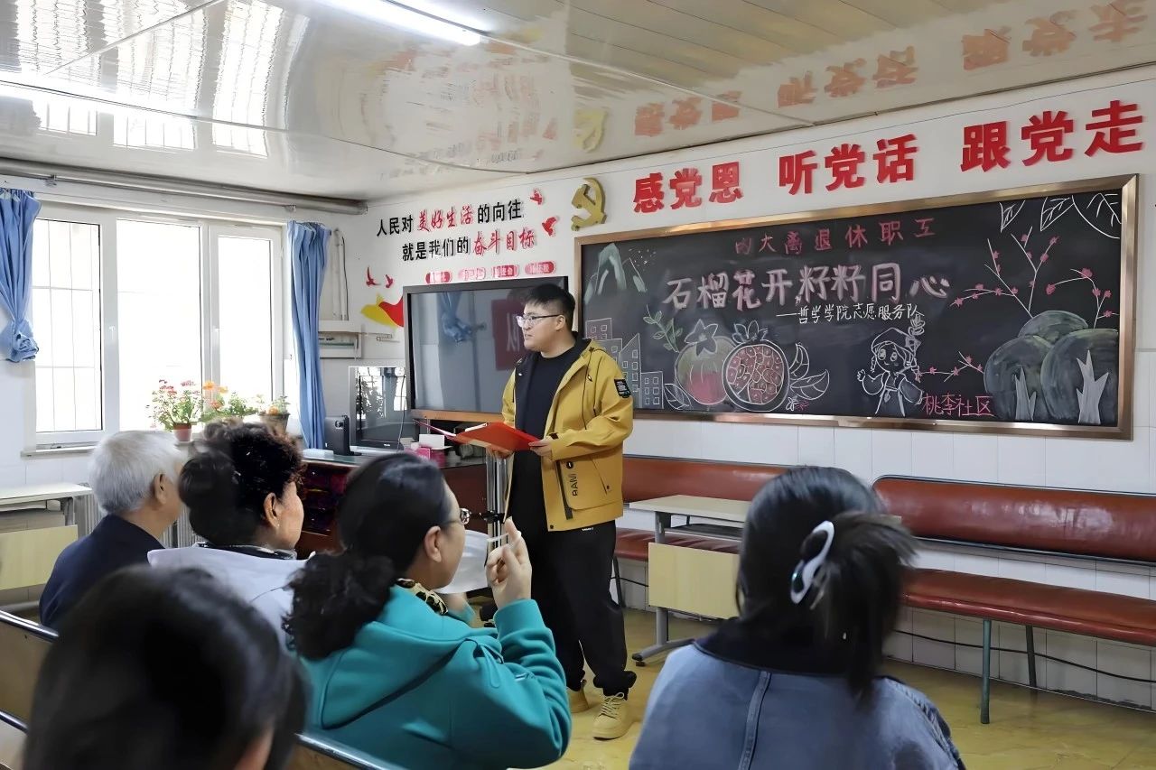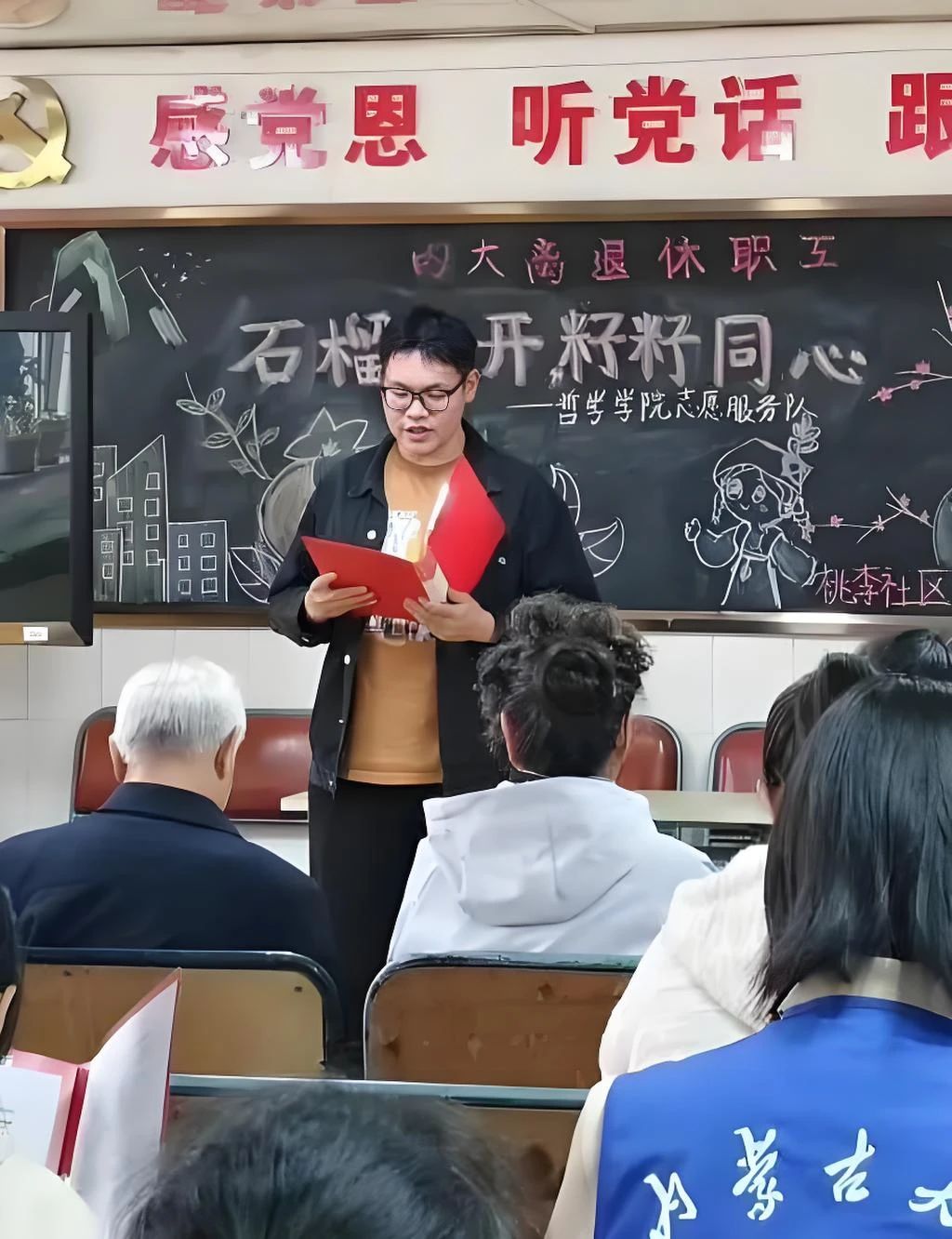 志愿同行促团结,你我共绘民族情。为增强民族团结意识、促进多民族文化交流与融合、培养社会责任感,365英国上市公司志愿服务队组织32名志愿者,联合内蒙古大学离退休人员工作处、内蒙古大学机关党委退休第二党支部、玉泉区昭君路办事处桃李社区于2025年4月17日下午在桃李社区老年活动中心开展了以“石榴花开,籽籽同心”为主题的民族团结精神宣传活动。