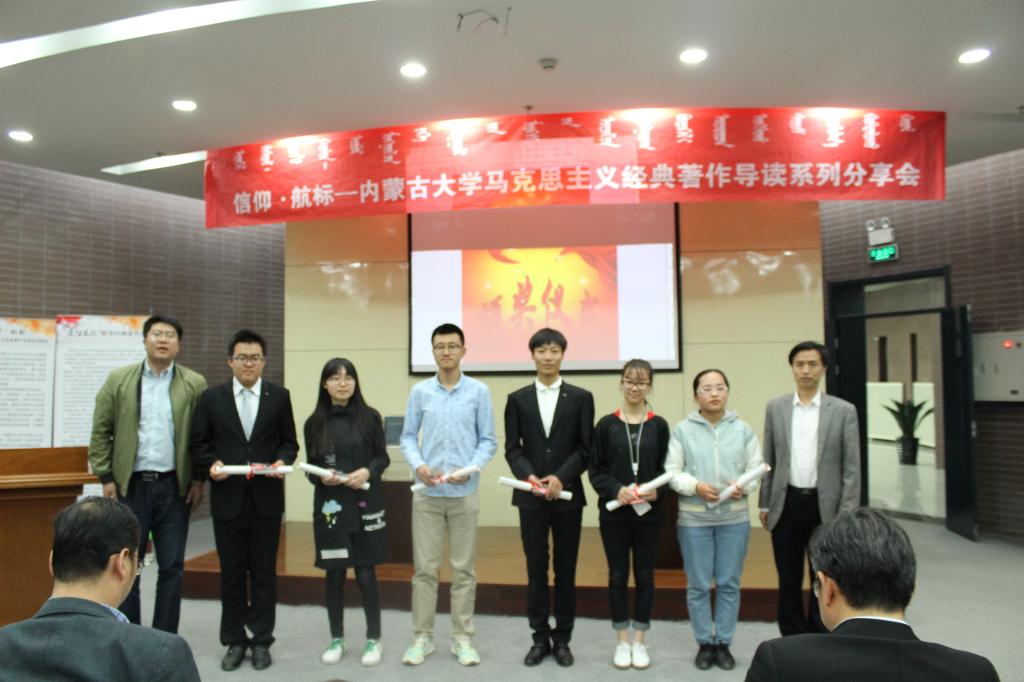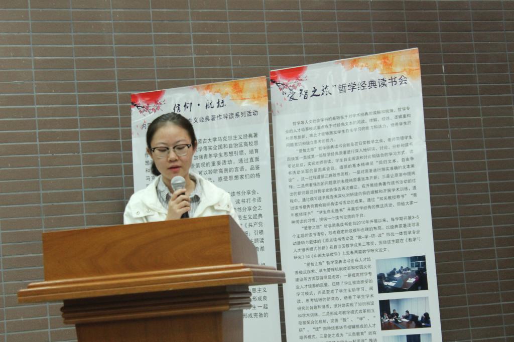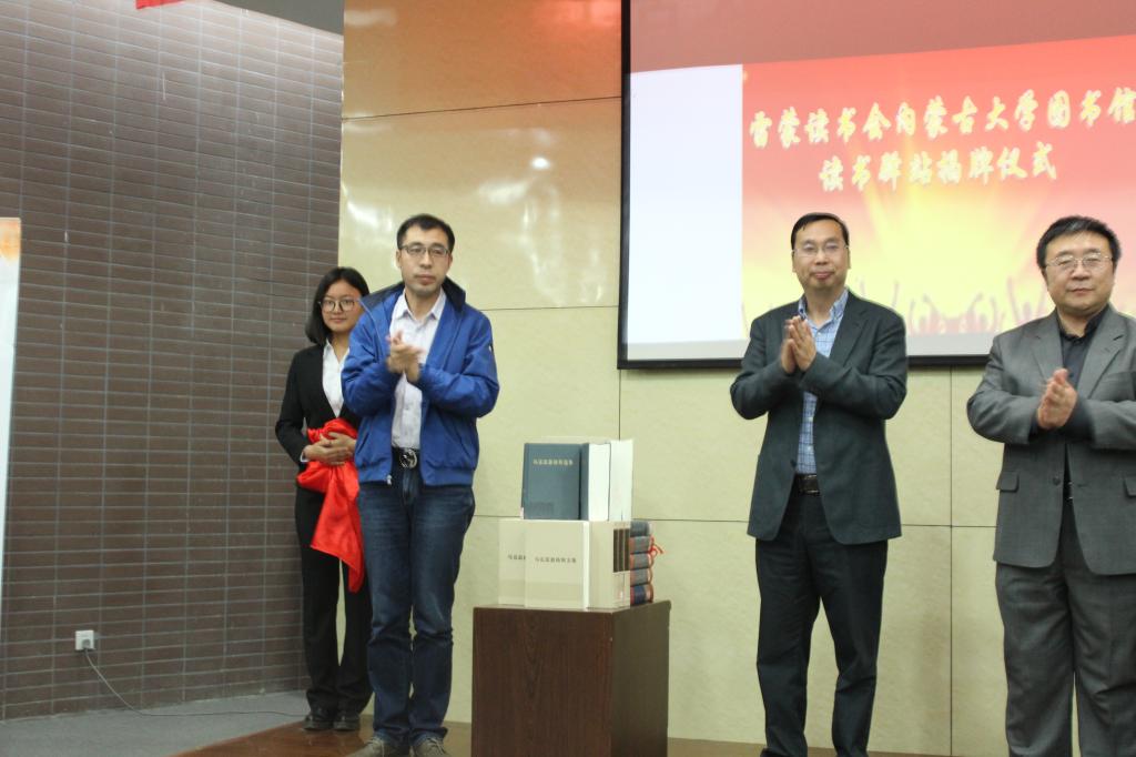 在现场经久不息的掌声中,雷蒙老师和刘实馆长为雷蒙读书会内蒙古大学读书驿站揭牌,李为民部长和景剑峰副处长启动“信仰•航标”马克思主义经典著作导读活动。365英国上市公司马克思主义哲学专业研究生吕倩宣读了活动倡议书,王松筠老师和尚建飞副院长启动马克思主义经典著作漂流活动并为首批活动班级颁发了漂流书籍,张士伟书记和吕俊副书记为“爱智之旅”哲学经典读书打卡活动的前六名同学颁奖并合影留念。