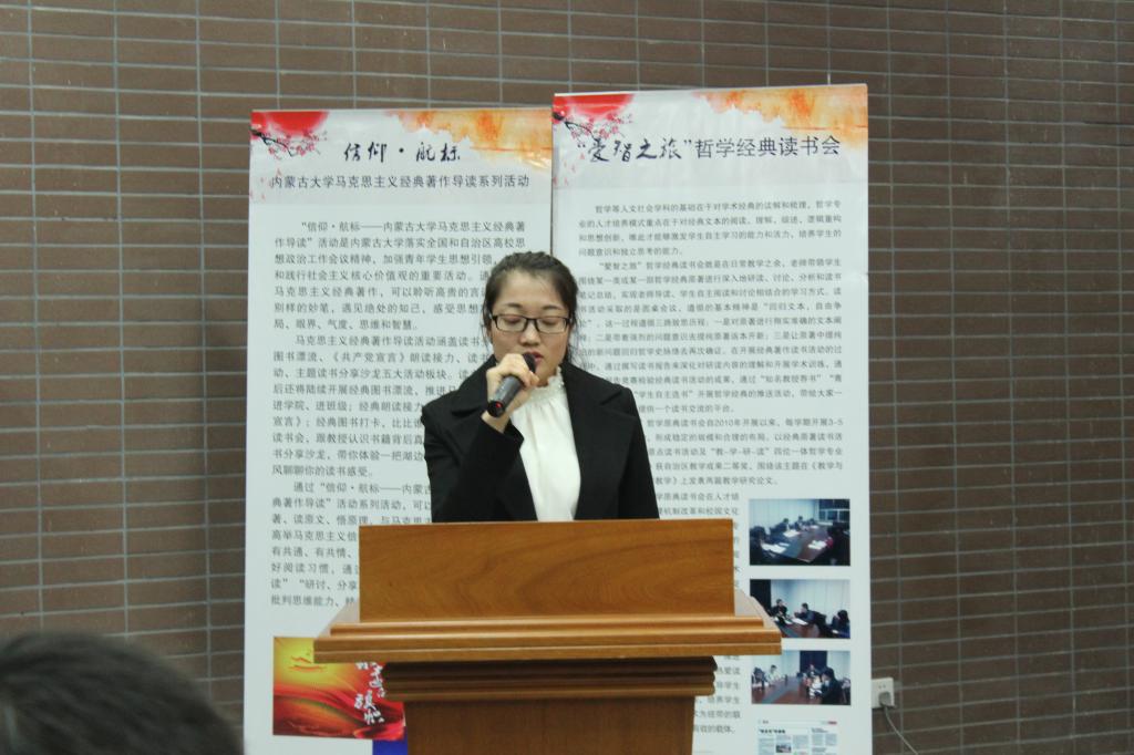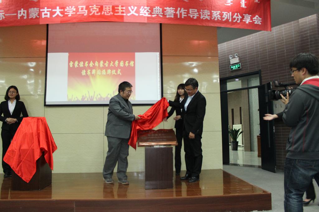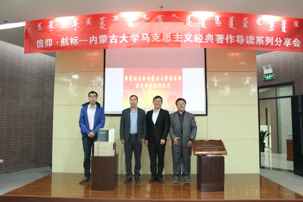 2017年 5月11日晚7:30,内蒙古大学图书馆(南校区)圆弧厅一号会议室显得热闹非凡,信仰·航标——内蒙古大学马克思主义经典著作导读分享会在这里举行,同时举行了雷蒙读书会内蒙古大学读书驿站揭牌仪式,启动信仰·航标——内蒙古大学马克思主义经典著作导读系列活动。此次活动由内蒙古大学党委宣传部、图书馆、365英国上市公司主办,由365英国上市公司“爱智之旅”哲学经典读书会承办,并得到雷蒙读书会及雷蒙公益团队的大力支持。