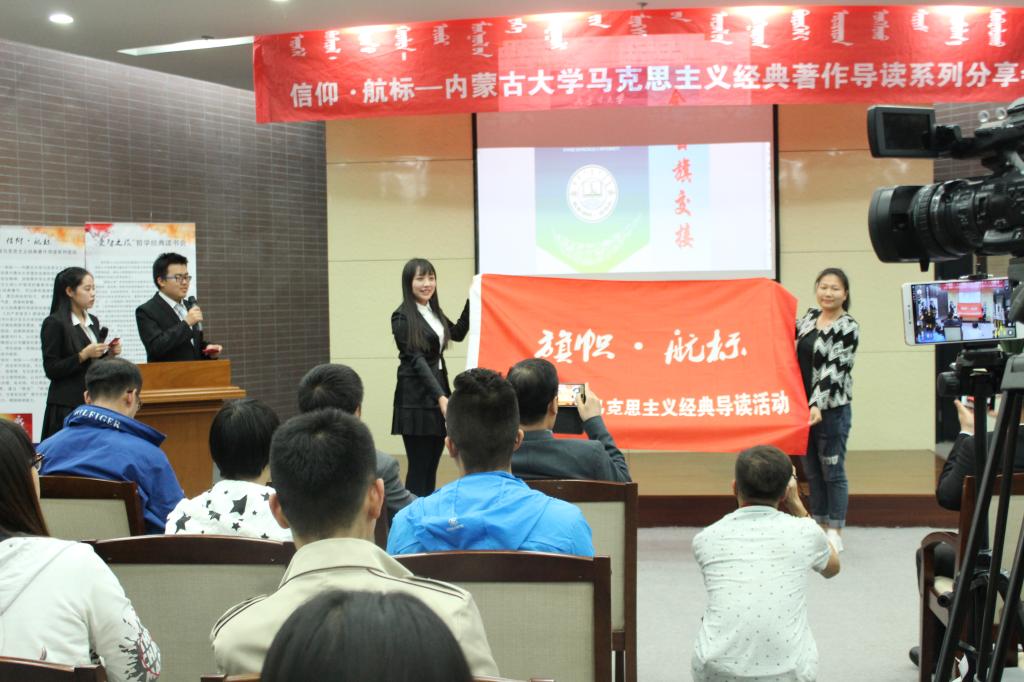 本次活动以“信仰·航标”为主题,共分两个环节。第一环节为雷蒙读书会内蒙古大学读书驿站授牌和“信仰•航标”马克思主义经典著作导读活动启动仪式。