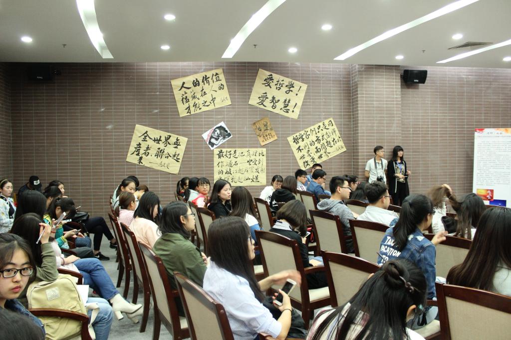 雷蒙老师为本次活动发表致辞,向在场的同学们讲述了读书的意义所在,希望同学们能够认真学习,好好读书,通过书籍丰富自己,做理性的思考者。