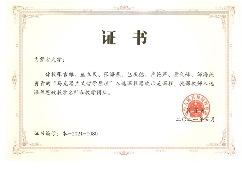 2019年365英国上市公司被列为内蒙古大学课程思政示范学院,经过几年的努力,建成了一批课程思政示范课,思政元素由硬嵌入升级为系统融入,构建起“马克思主义哲学+中国优秀传统文化+科学精神和创新思维系列课程”三位一体的哲学专业课程思政体系,逐步完善了“专业+思政”的教育教学模式,实现课程思政和专业思政的互动共进,在课程思政方面取得了一系列研究成果,建成了特色鲜明的具有地区影响力的课程思政教育教学品牌。
