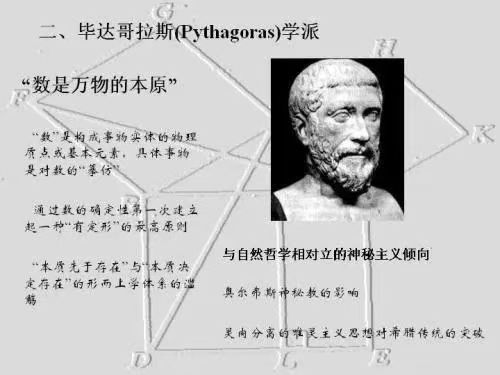 而毕达哥拉斯学派则对伊奥尼亚学派具体物质的否定,是由感性上升到抽象的第一步,主张众多的、不变的、先于有形物质而存在的数是世界的本原,是唯心主义的起点。爱利亚派主张世界的本原是“不变的一”,推崇形而上学。他们先后区分了真理和意见、存在与不存在、思想与存在、动与静、一与多。爱利亚派也提出了富有意趣的芝诺悖论和麦里梭悖论。