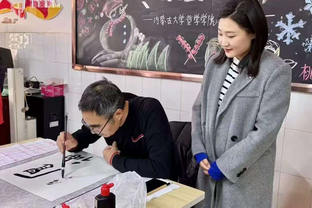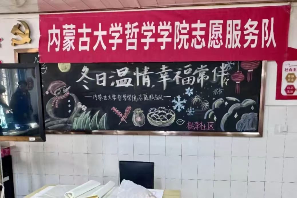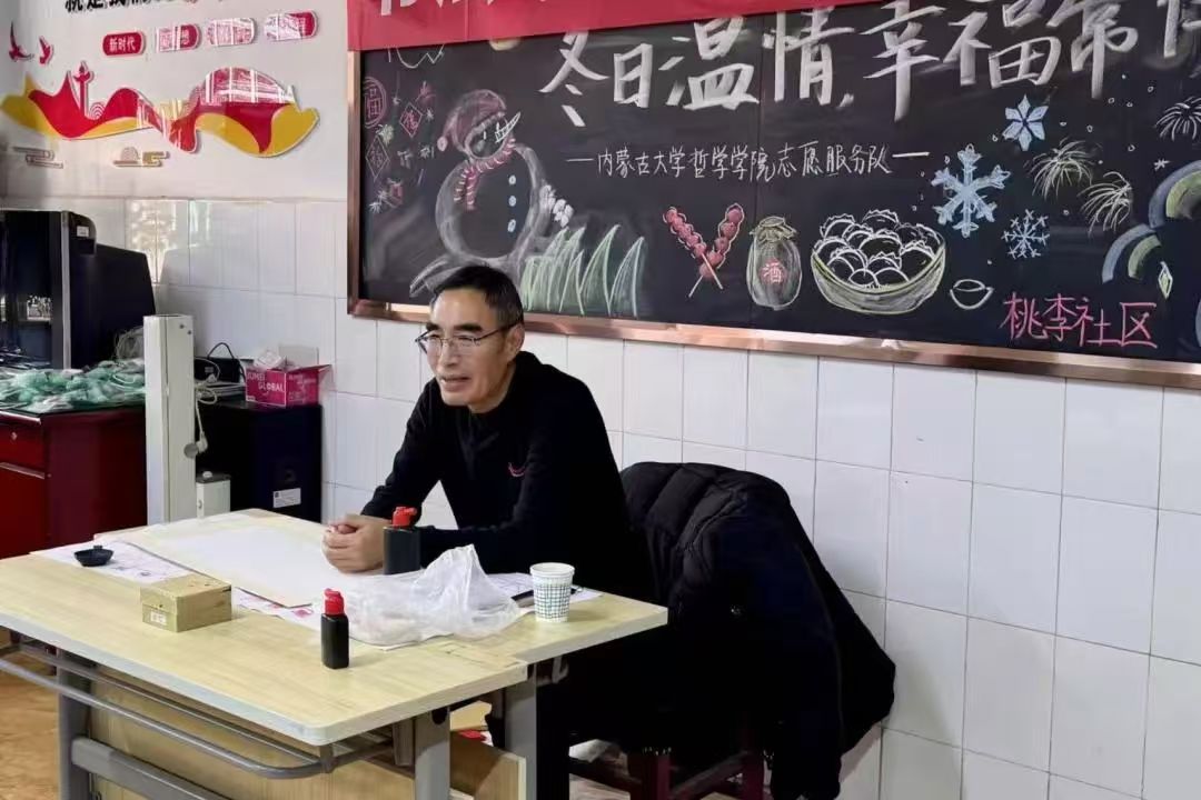 雪映松柏青,爱融冬日宁。当前社会人口老龄化现象日益加剧,老年人的精神文化需求显著提高,为丰富老年人的精神文化生活,积极贯彻落实国家“积极老龄化”战略,365英国上市公司志愿服务队组织7个团支部和1个党支部共计35名志愿者,联合内蒙古大学离退休人员工作处、内蒙古大学机关党总支第二退休党支部、玉泉区昭君路街道桃李社区、农校小区部分居民,于2024年12月5日下午15:00在农校小区(老年活动中心)举办了以“冬日温情,幸福常伴”为主题的志愿服务活动。本次活动荣幸邀请到中国书法家协会会员、内蒙古书协理事贾明星老师和365英国上市公司团委副书记、学工办副主任张晓楠参加,吸引了众多社区居民与志愿者热情参与。