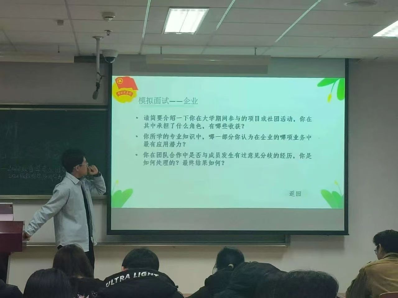 第三部分,2022级政治学、经济学与哲学专业团支部书记王茂杰作为不同岗位的面试官,针对不同职业与岗位特色对大家进行模拟面试。以帮助大家熟悉面试流程,增强团员青年们在面试环节的个人竞争力。