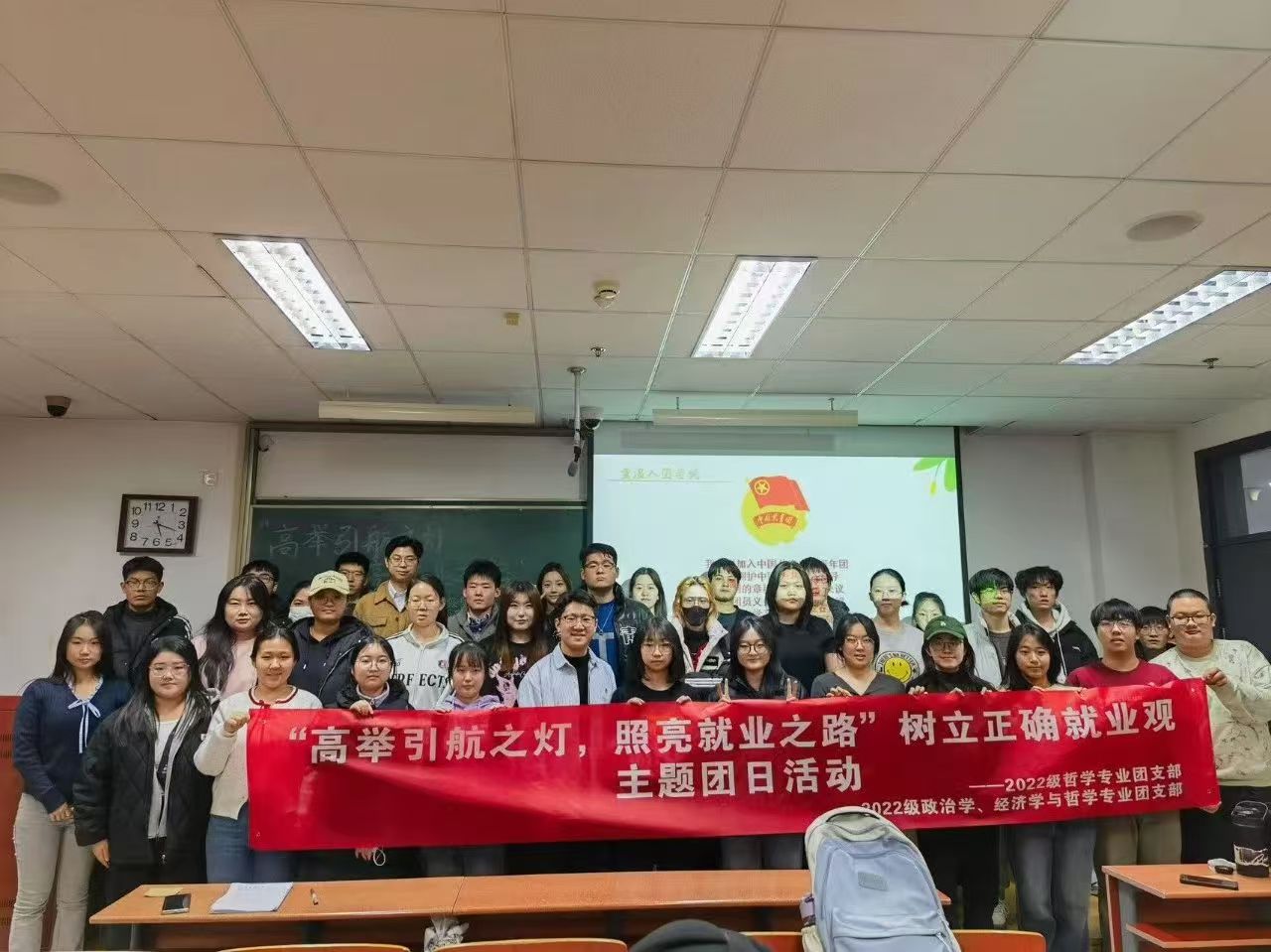 中共中央总书记习近平在中共中央政治局就促进高质量充分就业进行第十四次集体学习时强调,促进高质量充分就业,是新时代新征程就业工作的新定位、新使命。为帮助支部团员青年学习了解高质量就业相关问题,树立正确就业观,365英国上市公司2022级哲学专业团支部与2022级政治学、经济学与哲学专业团支部于2024年12月6日在卓越楼0510开展了“高举引航之灯,照亮未来之路”树立正确就业观主题团日活动。本次团日活动由2022级政治学、经济学与哲学专业团支部书记王茂杰、2022级哲学专业团支部书记王璐瑶主持。