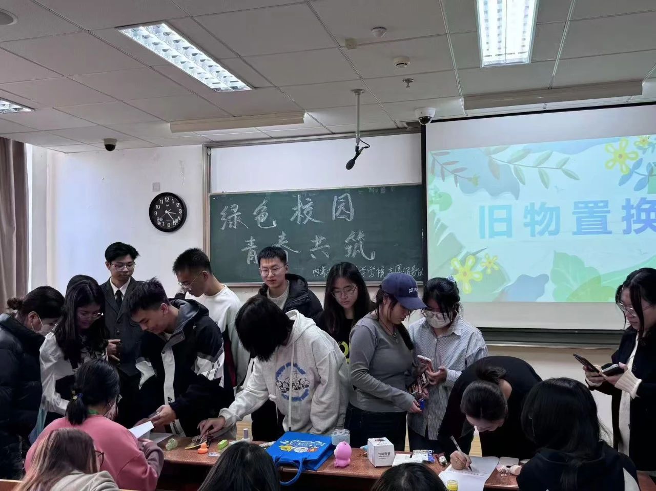 旧物换新主,环保迈大步。在“旧物置换,合力环保”环节,同学们满怀热情,带来往日闲置的旧物与其他同学进行交换,旧物于此寻得新主,得以在岁月的新旅途中续写价值篇章。资源的二次利用,可以有效减少浪费,将绿色信念编织成为校园中一抹动人且持久的文明亮色。