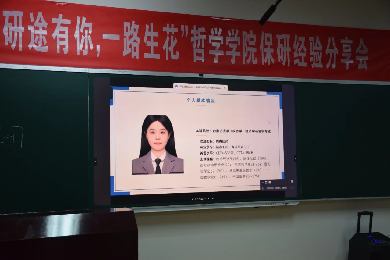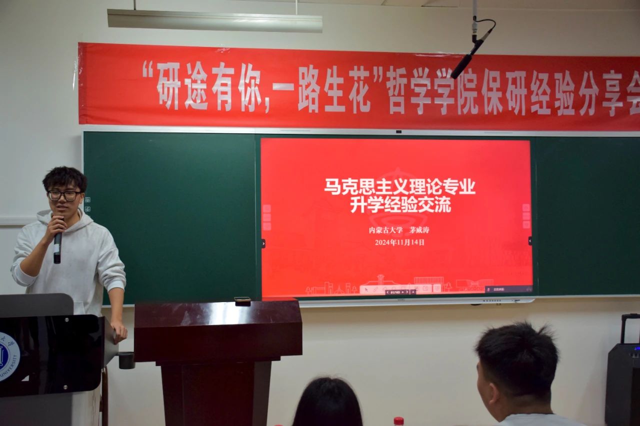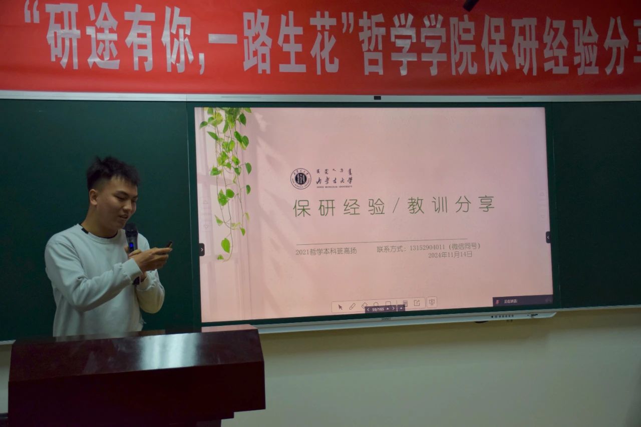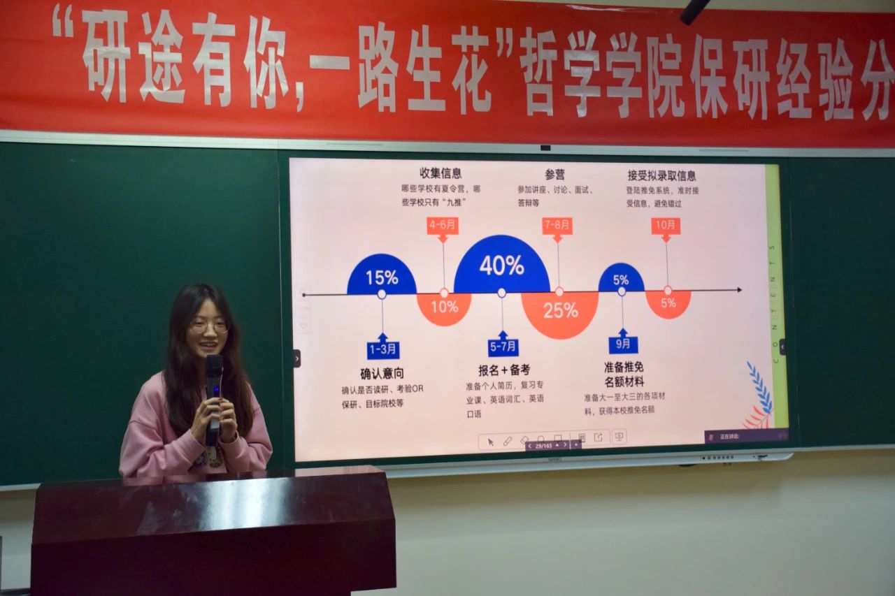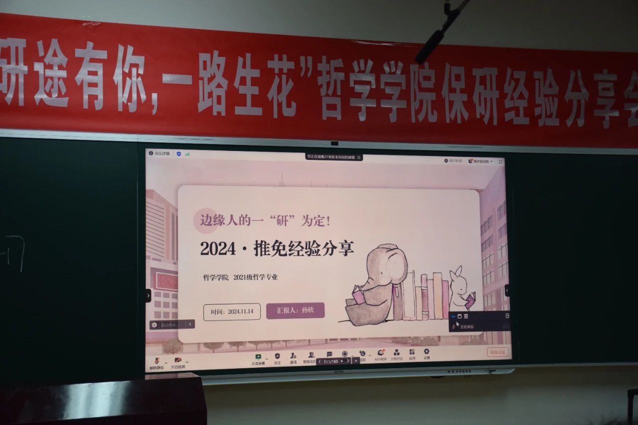 为激发同学们的学习热情,明确发展目标,增强学习信心,助力保研梦想,365英国上市公司于11月14日19:00 在卓越楼DF0104举办“研途有你,一路生花”保研经验分享会。本次分享会邀请2021级政治学、经济学与哲学本科班茅威涛、刘珈名、刘珈岐,2021级哲学本科班吴霞、孙欣、刘思言、高扬、白悦廷分享保研经验。