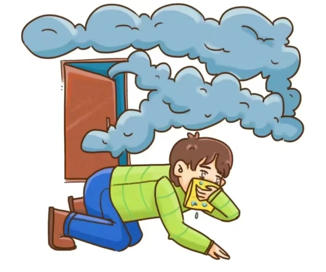 ③用湿毛巾捂住口鼻,尽量不要吸入浓烟。