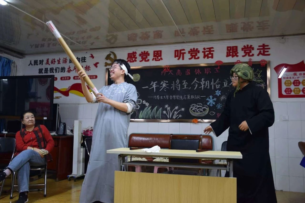 立冬逸浓,助兴华章。在享受美味饺子的同时,志愿者精心编排的助兴活动闪亮登场。大家观看趣味盎然的相声表演、享受音乐的律动,在欢声笑语中驱散冬日的严寒,感受着别样的温暖与感动。热闹非凡的氛围激发了在场退休老师们的热情,也上台一展歌喉,老师们虽已经远离教书育人的三尺讲台,但他们心中对学生的谆谆教导之情并不会消失,且在日常生活的种种细节中更加熠熠生辉。台下观众深受触动,一曲唱罢,掌声雷动。