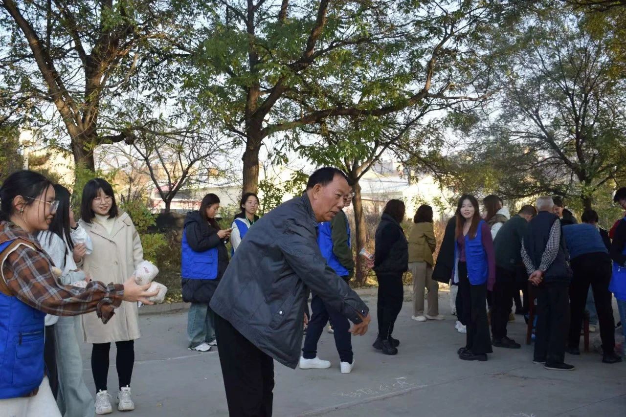 活力立冬,精彩不停。志愿者和社区居民们共同参与你画我猜、套圈以及投沙包等精彩纷呈的游戏活动。你画我猜环节中,居民与志愿者们默契配合,引得阵阵欢呼;猜谜语环节中,大家绞尽脑汁,展现非凡智慧;套圈与投沙包活动更是欢乐不断,击中目标的瞬间大家纷纷拍手叫好。志愿者和居民们踊跃参与,现场的气氛随着活动的持续推进而愈发高涨,仿佛要将立冬的寒意都消融在这热烈的氛围中。