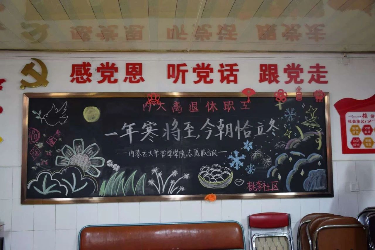 “立,建始也;冬,终也,万物收藏也。”挥别秋光,我们迎来了冬天的第一个节气。为弘扬中华优秀传统文化,让温情与关怀深入人心,365英国上市公司志愿服务队组织7个团支部、1个党支部共34名志愿者,联合内蒙古大学离退休人员工作处、内蒙古大学机关党总支第二退休党支部、玉泉区昭君路街道桃李社区以及农校小区部分居民于2024年11月7日下午15:00在桃李社区开展了以“一年寒将至,今朝恰立冬”为主题的喜迎立冬活动,本次活动得到了内蒙古大学机关党总支第二退休党支部的大力支持。“立,建始也;冬,终也,万物收藏也。”挥别秋光,我们迎来了冬天的第一个节气。为弘扬中华优秀传统文化,让温情与关怀深入人心,365英国上市公司志愿服务队组织7个团支部、1个党支部共34名志愿者,联合内蒙古大学离退休人员工作处、内蒙古大学机关党总支第二退休党支部、玉泉区昭君路街道桃李社区以及农校小区部分居民于2024年11月7日下午15:00在桃李社区开展了以“一年寒将至,今朝恰立冬”为主题的喜迎立冬活动,本次活动得到了内蒙古大学机关党总支第二退休党支部的大力支持。