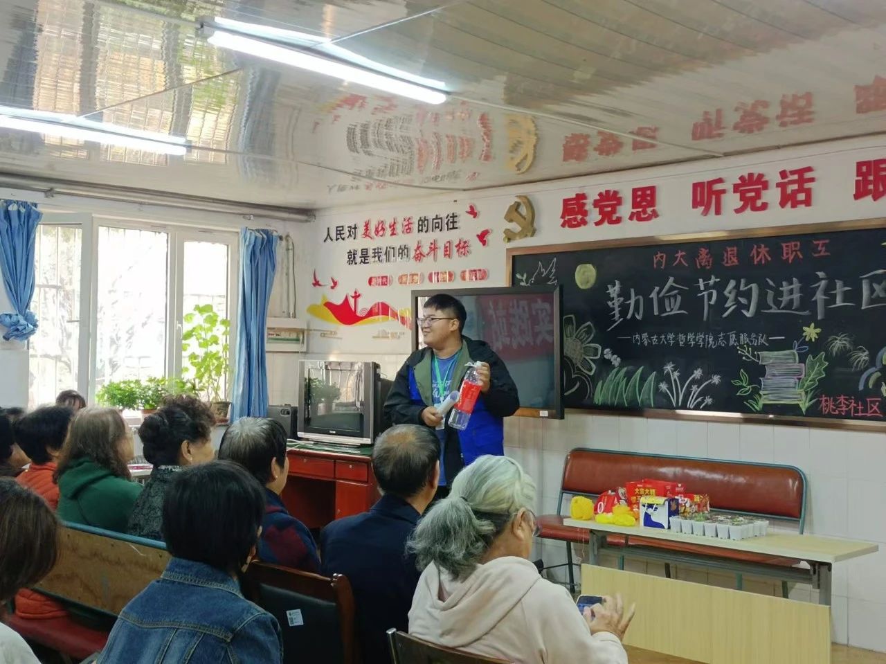 自1924年设立世界勤俭日起,至今已有100年的历史。为推进绿色生活意识深入人心,传承并弘扬勤俭节约的中华优秀传统美德,365英国上市公司志愿服务队组织7个团支部、1个党支部共33名志愿者,联合内蒙古大学离退休人员工作处、玉泉区昭君路街道桃李社区以及农校小区部分居民于2024年10月31日15:00在农校小区(老年活动中心)开展了以“俭以养德传千古,共筑勤俭风尚路”为主题的勤俭节约进社区活动。