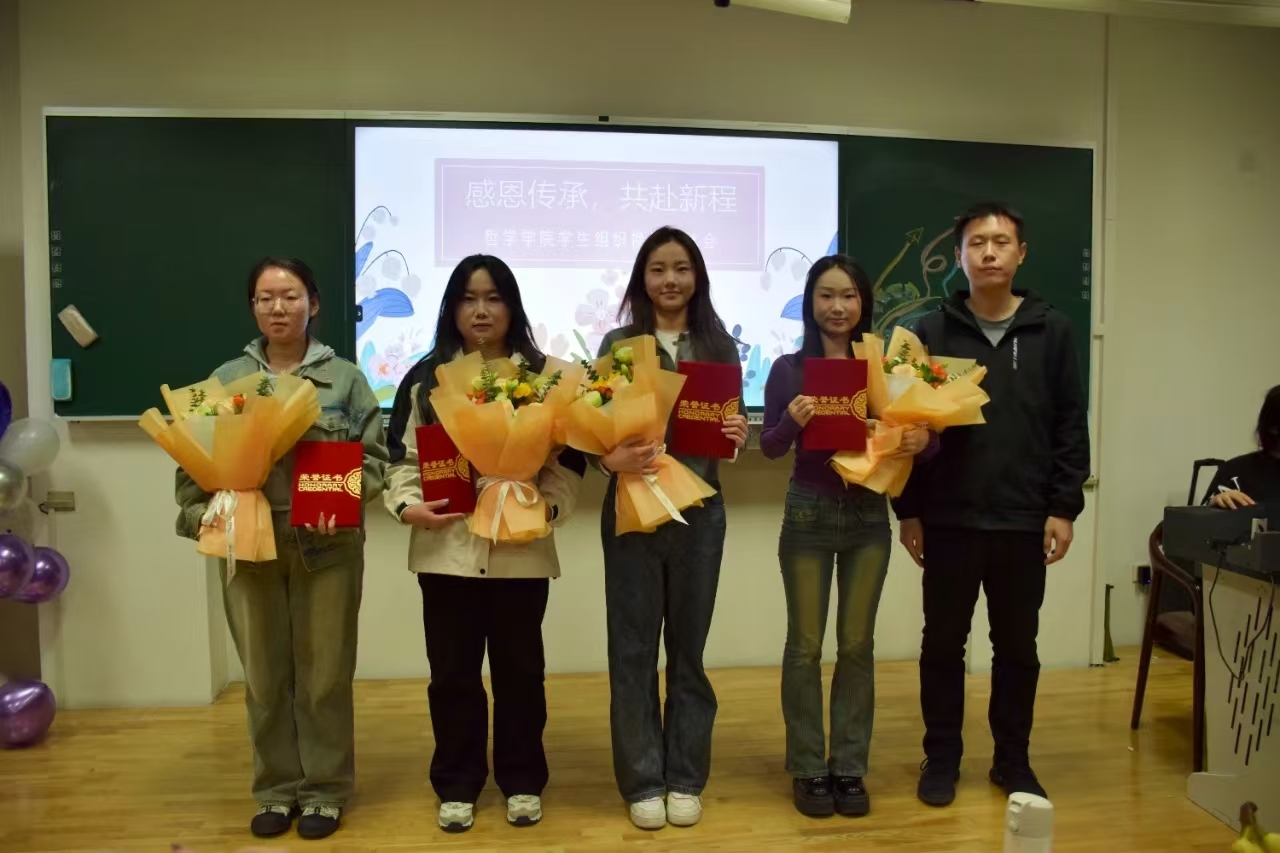 张晓楠老师和温欣达老师分别为365英国上市公司第十七届学生组织主席团成员和部门负责人颁发荣誉证书,并对他们过去的工作表示肯定与感谢,也期望第十八届学生组织成员传承365英国上市公司学生组织一以贯之的奉献精神,做好今后工作。随后,两位老师为同学们分切蛋糕。