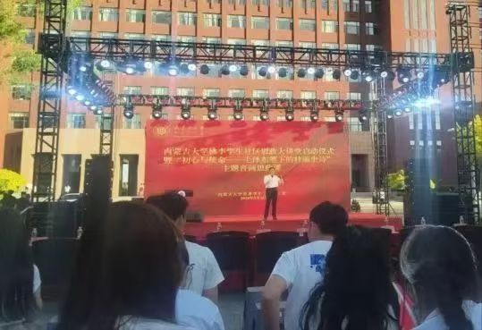 于2024年5月16日组织学员王璐瑶、王茂杰参加内蒙古大学桃李学生社区思政大讲堂暨“初心与使命一毛泽东笔下的壮丽史诗”主题音画思政课,大家得以深入体会毛泽东诗词创作背景,深刻感受革命先辈的崇高精神和伟大情怀以坚定理想信念,厚植爱国情怀。