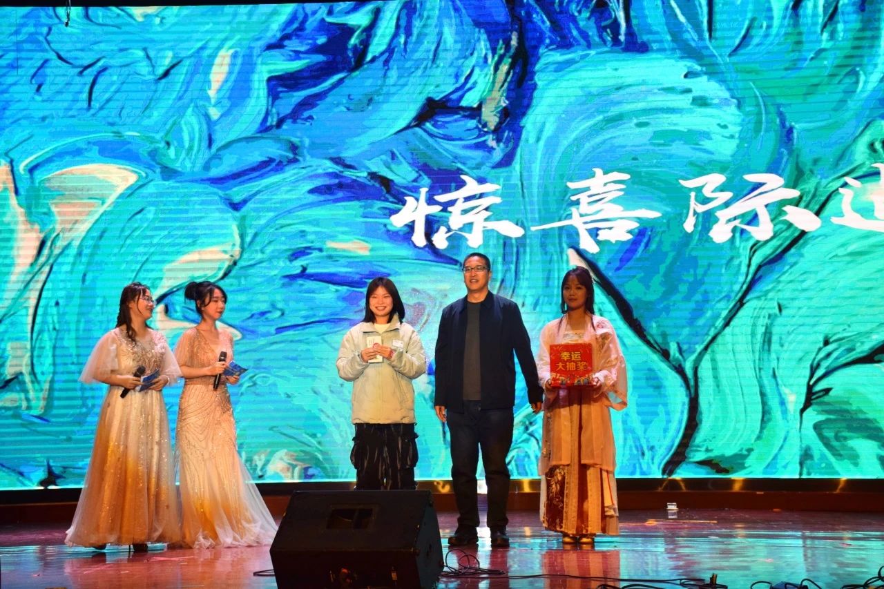 互动抽奖环节极具人气,吊足观众们的胃口,每位同学都热情参与,现场气氛热烈。