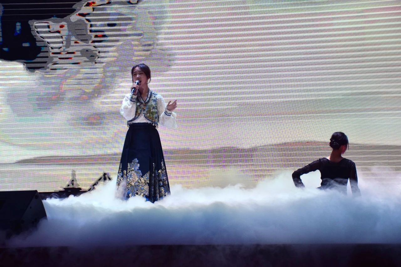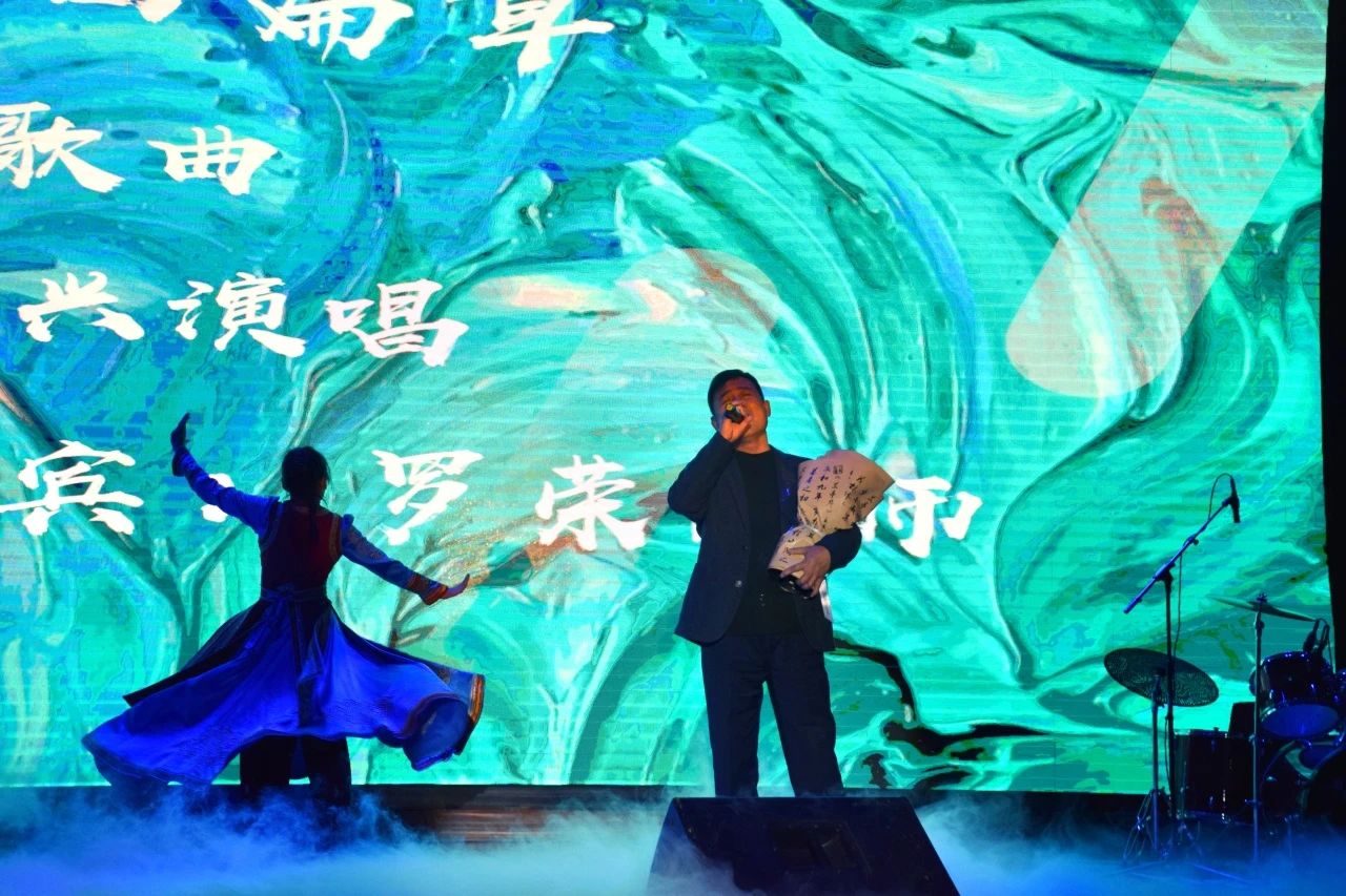 特邀嘉宾罗荣老师即兴演唱《草原上升起不落的太阳》,旋律逐渐攀升,歌声雄浑有力。