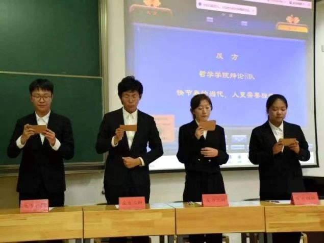 比赛中,每支队伍都展现了较高的专业素养和团队协作精神。辩手们通过精心准备的论据支撑自己的观点,灵活运用各种辩论技巧回应对手质疑,其表现赢得了全场观众的热烈掌声,充分展示了新一届哲院学子的思辨风采。比赛结束后,各位评委就各队表现进行了全面细致的点评,既赞扬了参赛者们的出色发挥,也指出了其不足之处,同时提出了具体改进建议。特别是在逻辑构建、事实依据使用等方面给予了针对性指导,鼓励大家在未来的学习与辩论中不断充盈知识、提升自我。