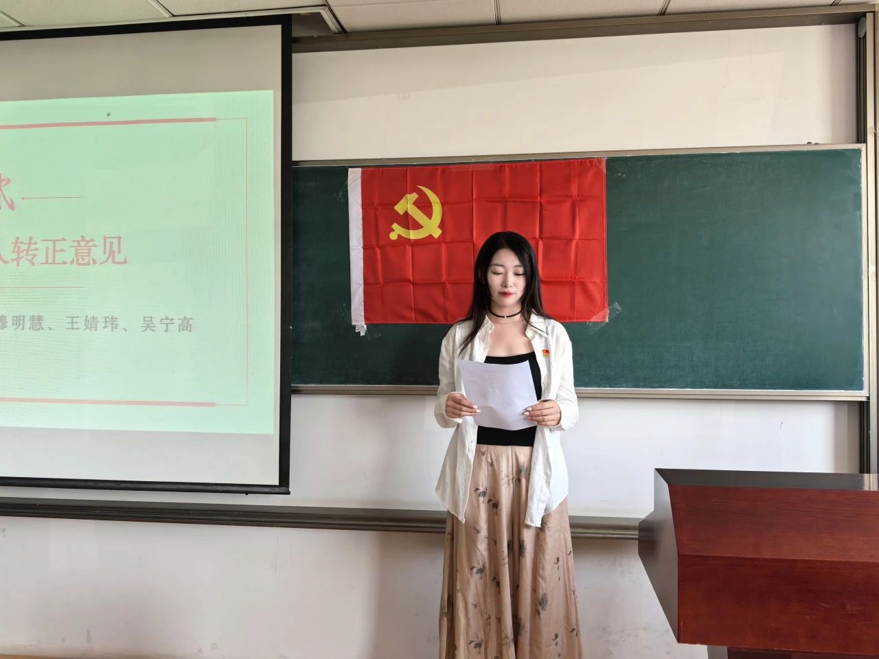 会上,由研究生党支部书记穆明慧宣布预备党员转正名单,预备党员依次详细汇报了一年预备期间自己的思想、学习、工作、生活上的成长与不足。