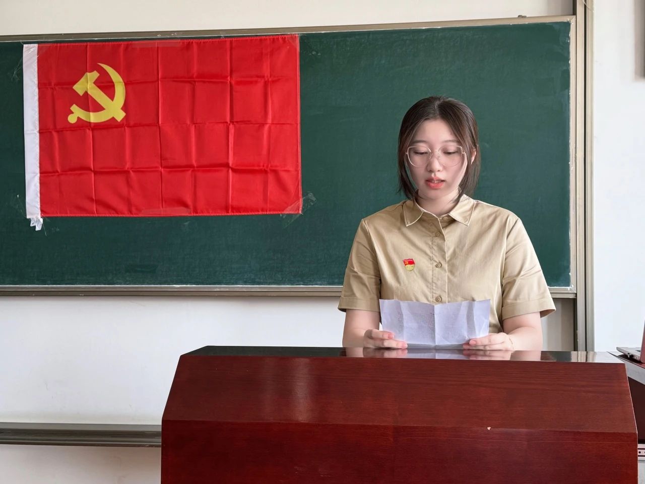 汇报完毕后,由赵予祺、穆明慧、王婧玮、吴宁高四位入党介绍人,分别对八位预备党员培养考察期的情况进行总结。