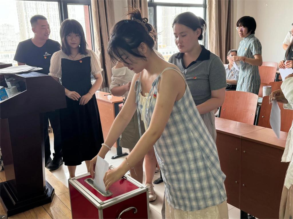 具有表决权的与会党员在听取各位预备党员的汇报及入党介绍人的意见后,进行现场无记名投票表决,并由研究生党支部书记穆明慧宣布票决情况及支部大会决议。
