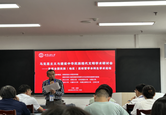 2024年5月17日至19日,由西南大学、国家民委少数民族哲学思想与文化传承创新研究基地主办,四川大学、西南大学、云南大学、贵州大学、内蒙古大学、内蒙古师范大学、兰州大学承办的“马克思主义与建设中华民族现代文明研讨会——首届全国民族(地区)高校哲学专业本科生学术论坛”在四川省成都市西南民族大学顺利举办。