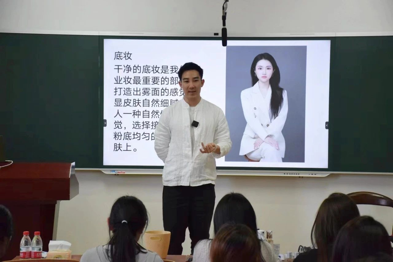活动之初,王雨潇老师为同学们细致讲解了职场仪表的基本理论,即如何选择适合职场的着装搭配,如何打造自然美观的职场妆容。