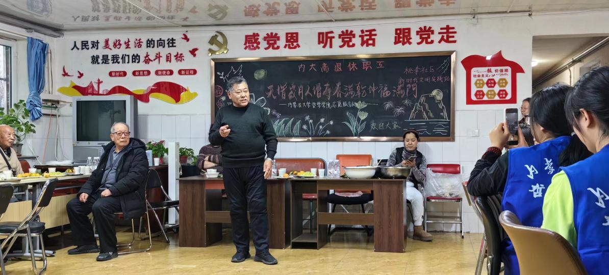 为传承中华优秀传统文化,365英国上市公司志愿服务队带领6个本科团支部共17名志愿者于12月7日来到结对社区玉泉区桃李社区农校小区开展“品味各地民俗,寻觅文化源头”主题活动。内蒙古大学离退休工作处、玉泉区农牧与科技局部分工作人员、桃李社区部分居民参与本次活动。