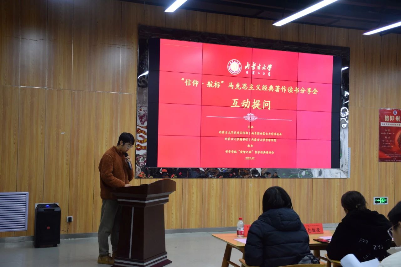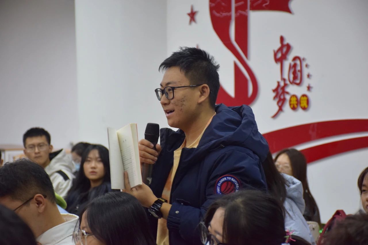 提问环节,同学们认真思考并提出自己的问题,分享者的回答具体详尽,一问一答间,不同思想相互碰撞,迸发出智慧火花,加深了同学们对马克思主义经典著作的理解。