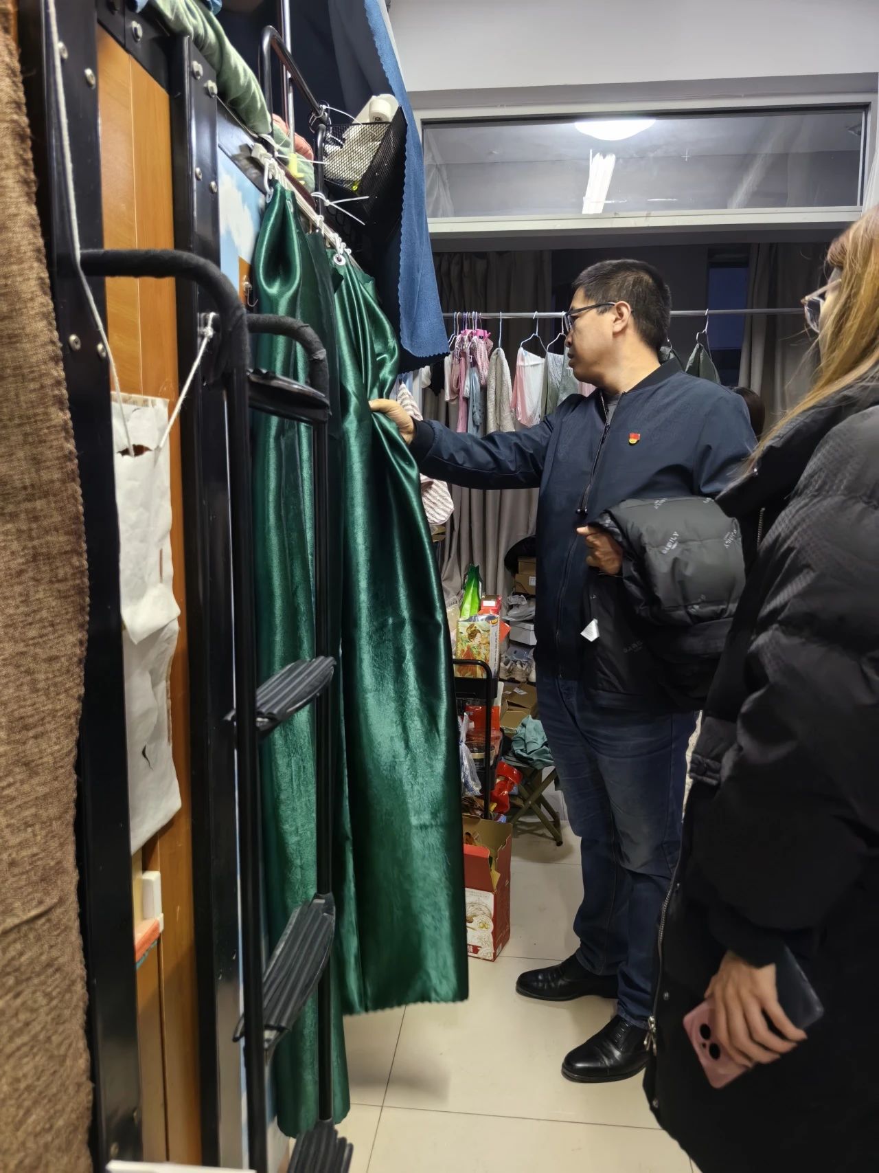 检查过程中,郭书记走访了每间宿舍,对可能存在安全隐患的区域进行了细致的检查,重点强调了离开宿舍时要关闭插排、人走灯关、注意宿舍卫生等问题。最后,他期望同学们在提高自身安全意识的同时,遵守宿舍安全管理制度,保证宿舍干净整洁。
