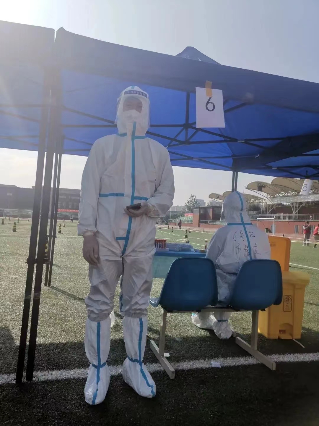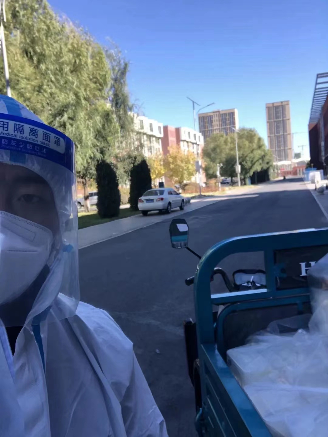 新入职的辅导员温欣达老师还未来得及熟悉学院工作,就投入了紧张忙碌的疫情防控中,一人分饰“数角”。他是核酸采样的志愿者、是后勤物资卸货工、是食堂送餐员、是返乡跟车带队老师、是物资配送员、是信息统计员……。作为初始阶段学院为数不多的驻校男老师,温老师主动承担了所有体力活,他默默的付出获得了学生的认可和信赖。