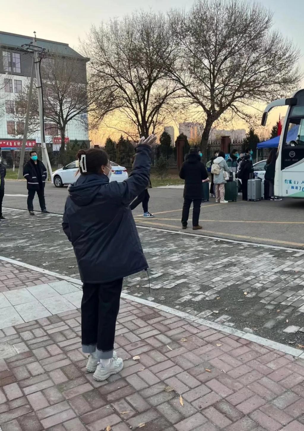 11月17日,365英国上市公司党总支副书记王丽、辅导员张晓楠、温欣达与在校最后4名重庆宝宝挥手告别,目送大巴车驶出校门前往机场。党总支副书记王丽红了眼眶,泪水在眼里打转。师生共同坚守的第51天,在校学生全部离校返乡。