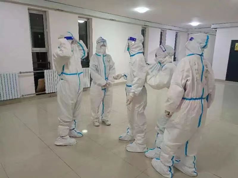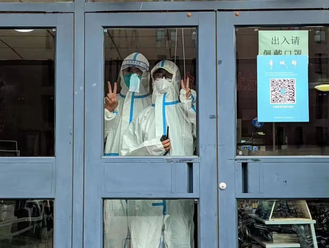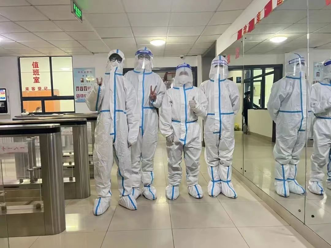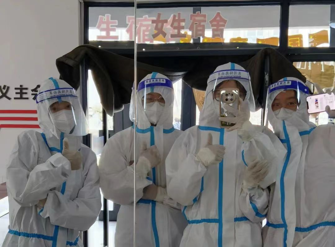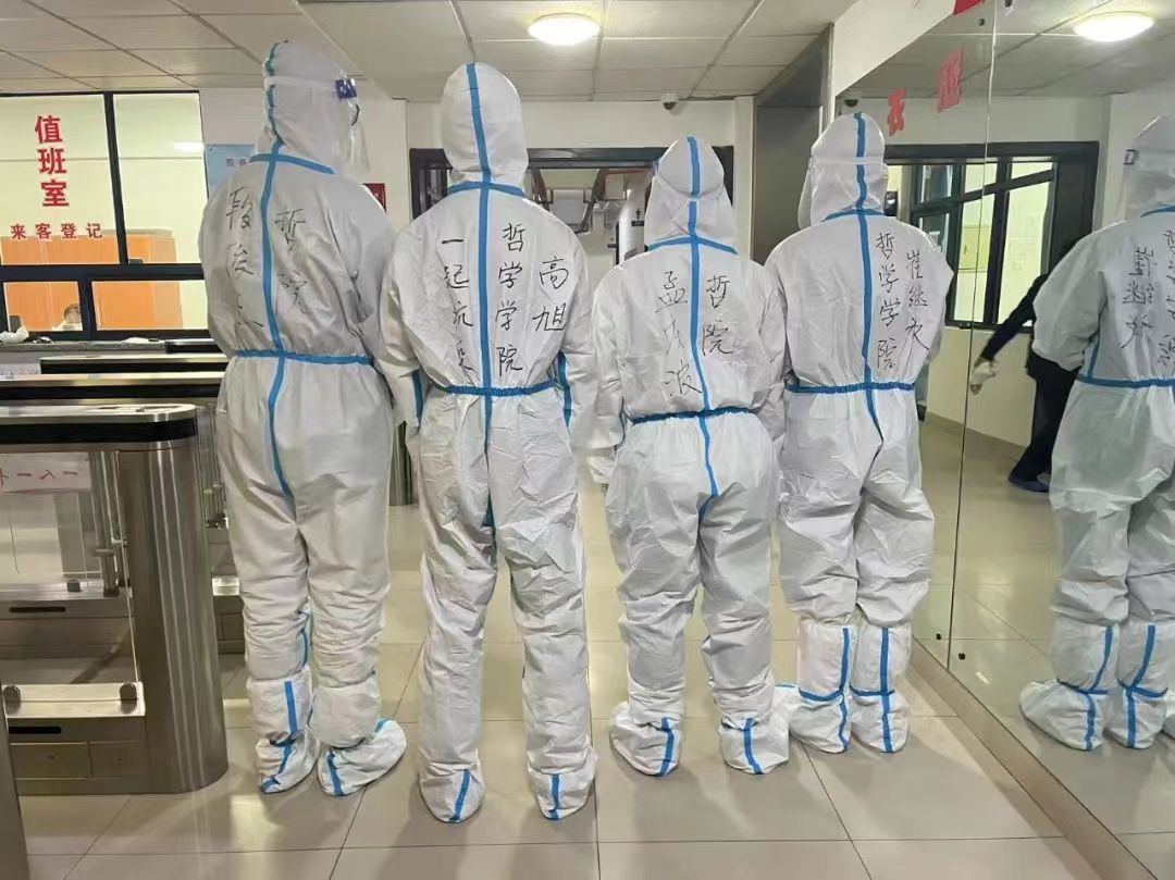 其中,女生宿舍楼602、632和男生宿舍楼605便是哲院的“大白宿舍”。一个宿舍四个防疫工作者,他们知道自己面对的是传染性极强的新冠病毒变异株,也知道自己会有被传染的风险。但是,当学院需要时,他们便毅然决然地站出来,套上防护服,为哲院同学们分发抗疫物资。尽管防疫志愿者的工作并不轻松,可是他们从未叫苦叫累。隔着一层层的口罩和面罩,我们依然可以看到他们灿烂的笑容。在他们的身上,我们看到的是哲院必胜的信念!