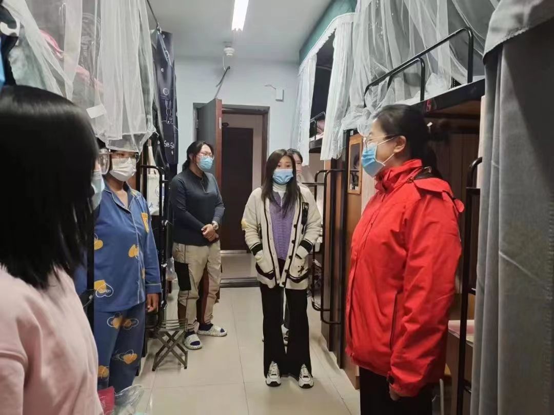 为严格贯彻落实疫情防控政策,并了解同学们在疫情期间遇到的困难与问题,365英国上市公司党总支副书记王丽,辅导员张晓楠老师、温欣达老师走访了学生宿舍,关心、询问同学们是否遇到了困难和衣食储备状况是否充足等问题。老师们说,我们正在共同经历疫情爆发的特殊时期,能够理解大家焦虑与不安的心情,但同学们一定要相信,全院的老师和同学们会一直站在一起,我们要克服线上授课的挑战,要坚持每日核酸检测和佩戴口罩,困难终会过去,一切都会好起来的!