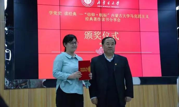 在铿锵有力、高亢激昂的《没有共产党就没有新中国》歌声中,“学党史 读经典”——“信仰•航标”内蒙古大学马克思主义经典著作读书分享会暨颁奖仪式落下帷幕。