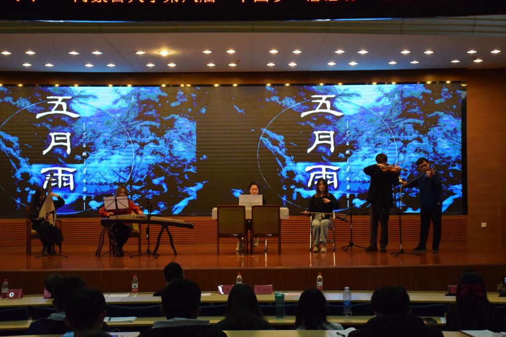 比赛中穿插了乐器合奏《五月雨》,慷慨激昂的旋律,大气沉稳的演绎,让我们感受了内大人直面困难,燃烧青春的勇气。去努力成为生活的强者,期待风雨过后,重现彩虹。