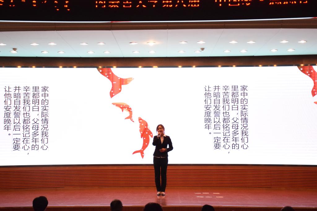 本次演讲比赛分为两个环节,分别是主题演讲和即兴演讲。主题演讲主要表达选手感恩祖国的情怀,即兴演讲则考察其随机应变能力。在主题演讲环节中,各位选手神采飞扬、心怀感恩、也展现了对祖国的深情厚谊。即兴演讲环节选手们真情流露,场下观众也心生感动。在选手们讲述对时事的理解和个人的经历时,台下的同学们对选手们所解读的时事也有了更深刻的理解并产生了强烈共鸣。