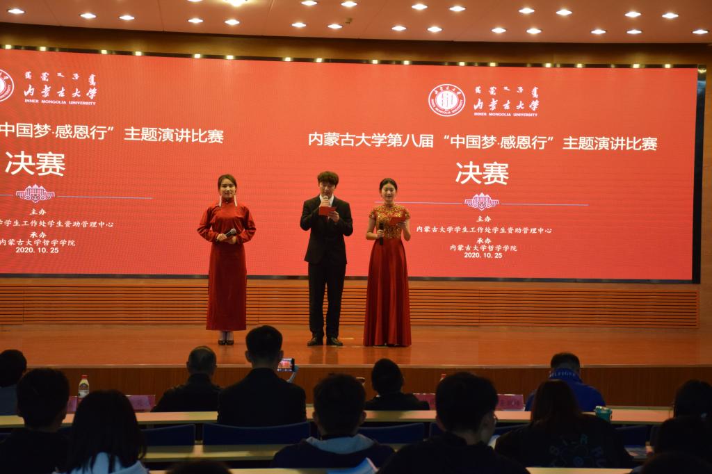 近年来,我校进一步完善学生资助政策,以习近平新时代中国特色社会主义思想为指导,全面贯彻落实党的十九大和全国教育大会精神,大力推进精准资助,用好新时代学生资助的“奋进之笔”。在此背景下,我校于2020 年 10 月 25 日 19:00在内蒙古大学北校区行政楼 9 号会议室隆重举办内蒙古大学第八届“中国梦·感恩行”主题演讲比赛,在增强大学生感恩意识的同时,宣传国家、自治区和学校学生资助政策, 激励大学生奋发图强、树立正确的人生观。