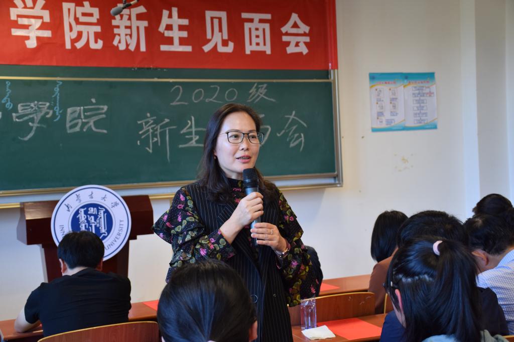 刘颖老师和张晓楠老师围绕教学及学生管理进行入学教育。刘颖老师介绍了课程培养方案,并强调了选课注意事项。张晓楠老师围绕请销假制度、宿舍管理制度、奖助学金评选等方面做了详细介绍,并提醒新生培养安全意识,注意防范网络诈骗,希望同学们能积极参加活动,多与老师同学交流。