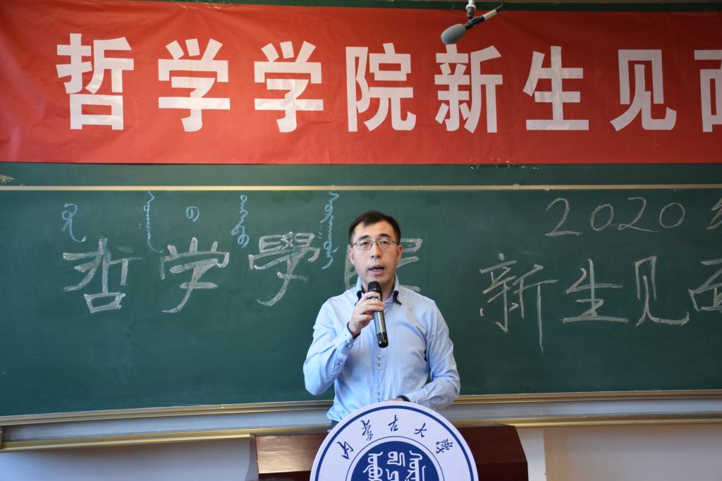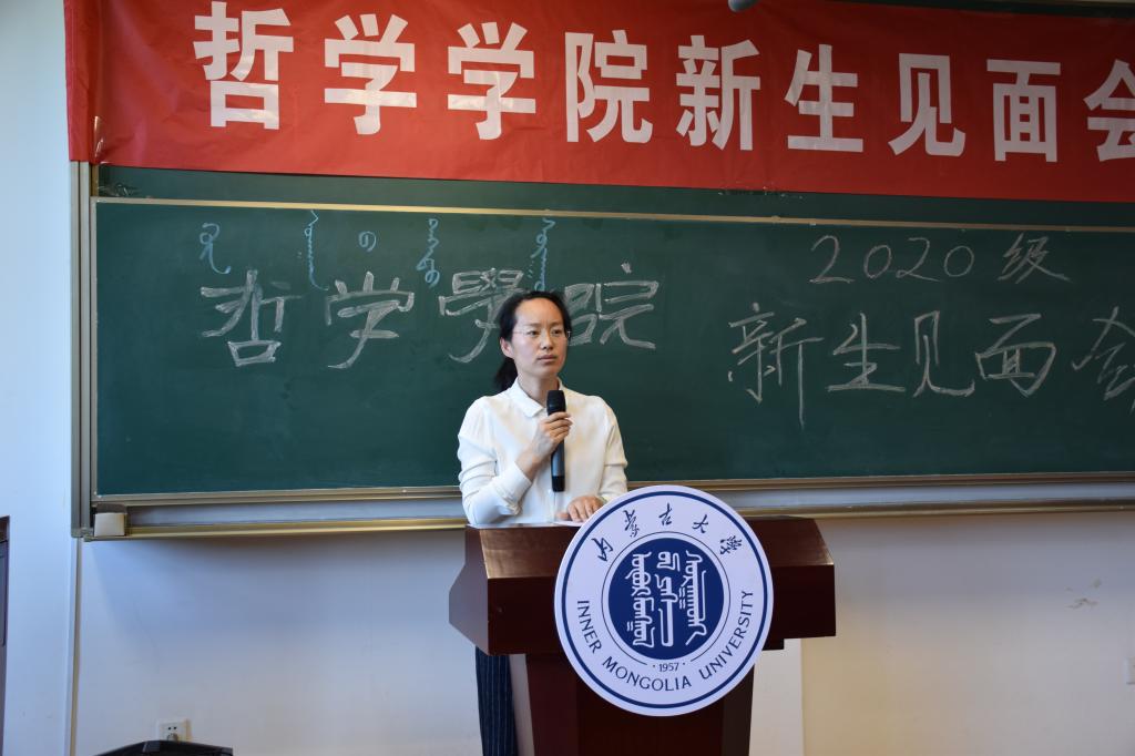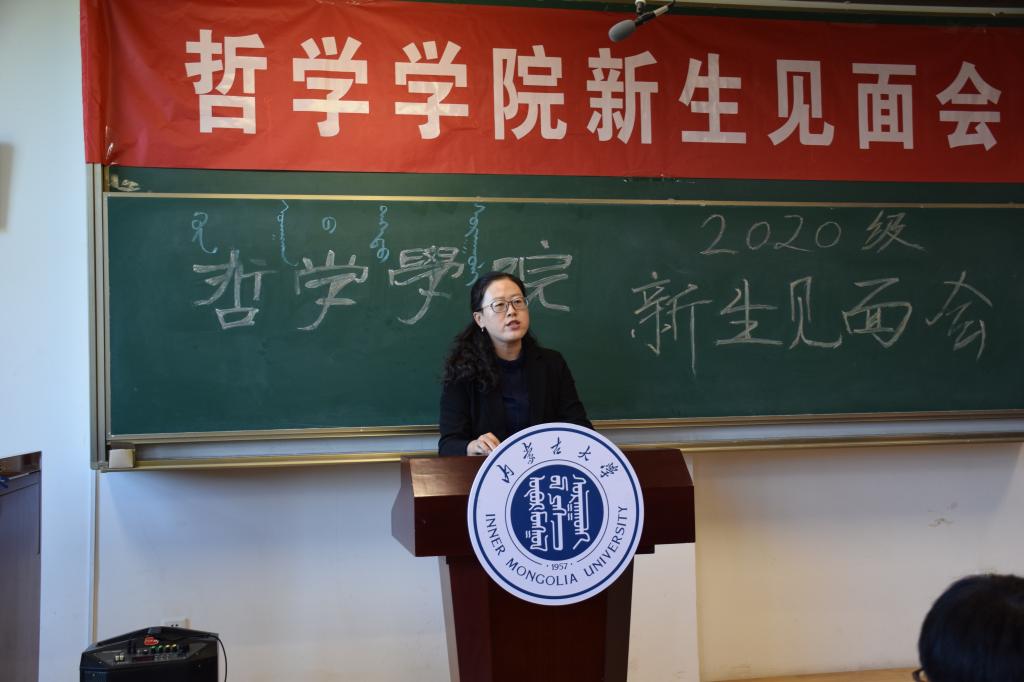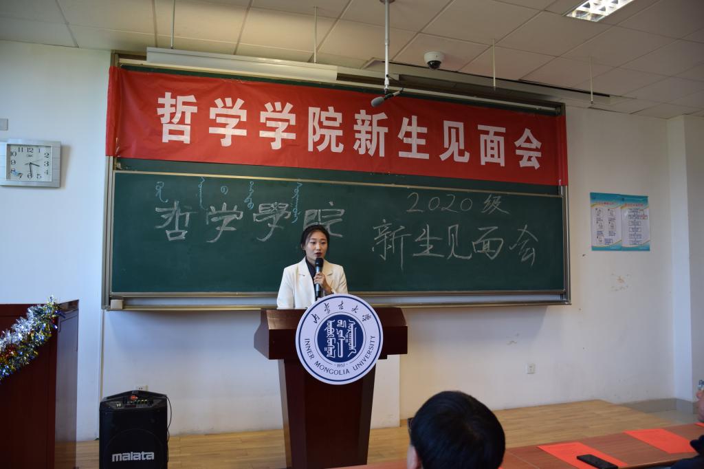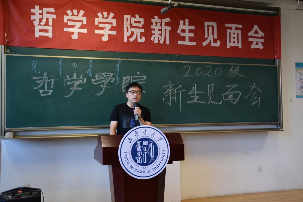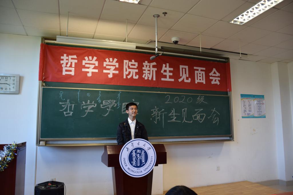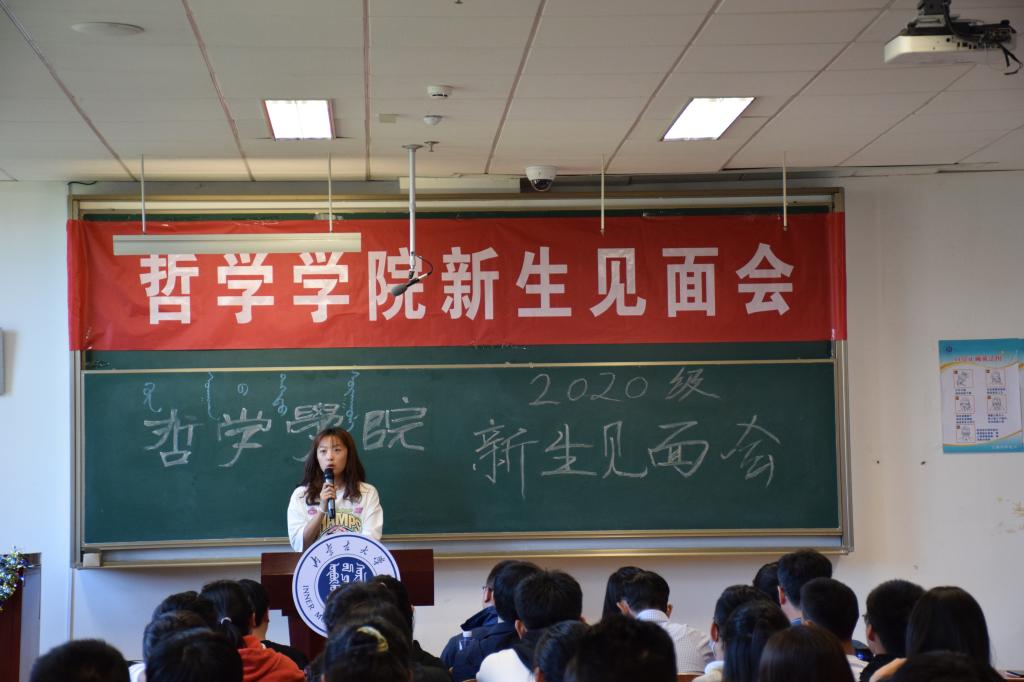 2020级新生研究生代表王玥和本科生代表陈飞龙先后发言。他们对于在迎新时给予了新生帮助的老师和同学们表示感谢,并且表达了日后在哲学学习中的信心与决心。