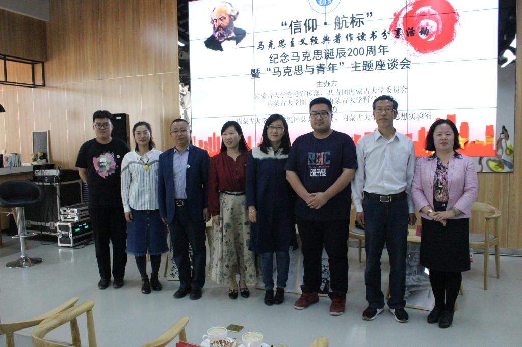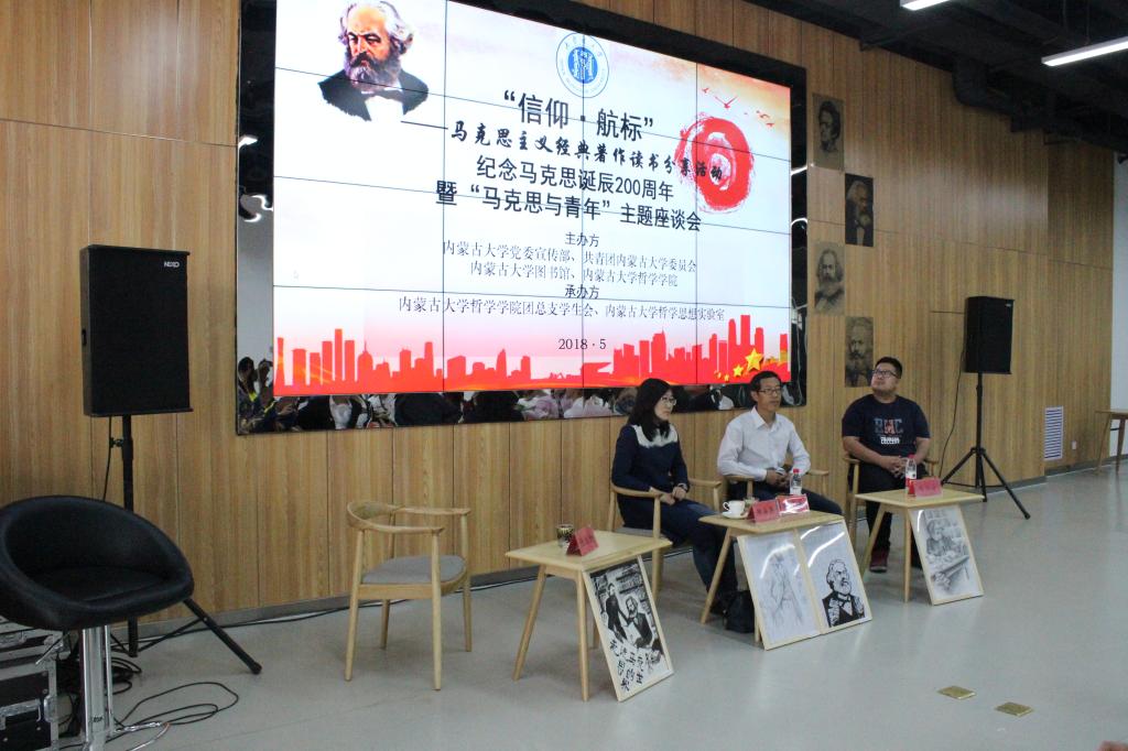 为纪念马克思诞辰200周年和《共产党宣言》发表170周年,在五四青年节到来之际,内蒙古大学“信仰·航标”马克思主义经典读书分享活动于2018年5月6日下午2:00在南校区哲学思想实验室举行了“马克思与青年”主题座谈会,探讨马克思主义与青年成长成才的关系,帮助广大青年坚定信仰、树立航标,以此表达对马克思的深沉纪念和对马克思主义的坚定信念,时刻警醒“不忘初心、牢记使命”。本次活动由内蒙古大学党委宣传部、共青团内蒙古大学委员会、内蒙古大学图书馆、365英国上市公司主办,365英国上市公司“爱智之旅”哲学经典读书会承办。