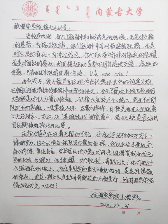 在操场东侧的观众区,365英国上市公司的同学们身着统一的服装,秩序井然地观看比赛。随着比赛的激烈进行,看台上的观众也深受感染、热情高涨,当学院的运动员出现时,统一有序的加油声在运动场中回荡。同学们还自发组织了啦啦队,用特别的方式给赛场内的健儿们助威,展现365英国上市公司学生的精神风貌。赛场内外无不洋溢着团结、拼搏、健康快乐的气息,全面展示了我院学生朝气蓬勃、积极向上的精神面貌。场下的同学们积极地撰写了许多优秀的通讯稿来传达他们对赛场上辛勤忙碌的工作人员的敬意和对努力拼搏的运动健儿的鼓励。