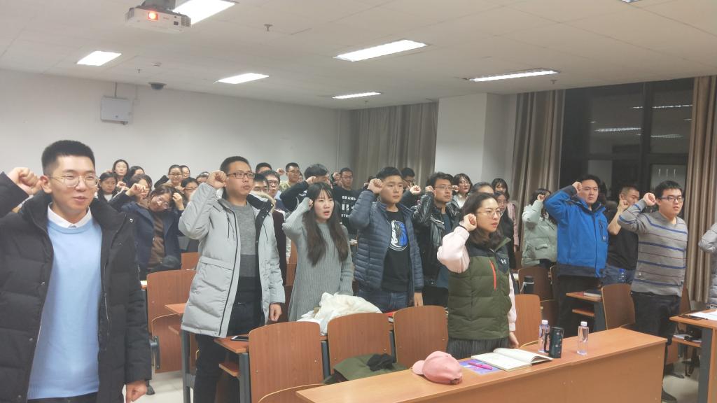 大会最后,全体人员起立,在主持人的带领下,举起拳头完成庄严的入党宣誓:“我志愿加入中国共产党,拥护党的纲领,遵守党的章程,履行党员义务,执行党的决定,严守党的纪律,保守党的秘密,对党忠诚,积极工作,为共产主义奋斗终身,随时准备为党和人民牺牲一切,永不叛党。”
